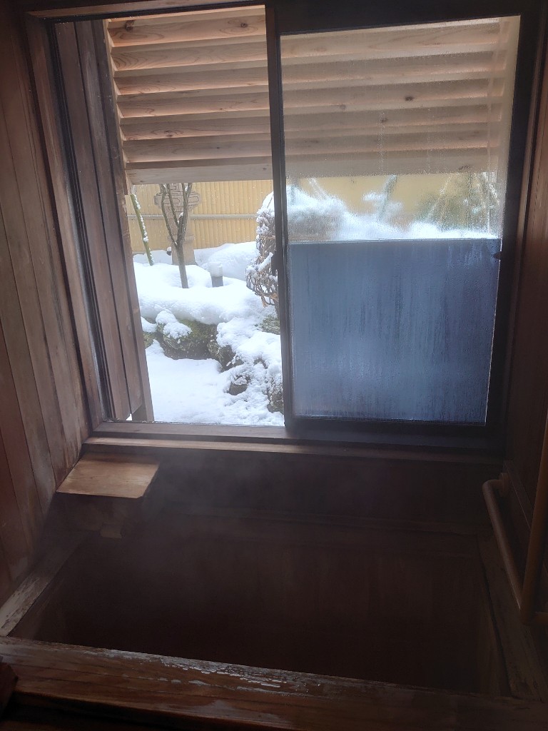 気温は当館玄関先の気温計で0℃と昨日までの春のような暖かさが嘘のようです。