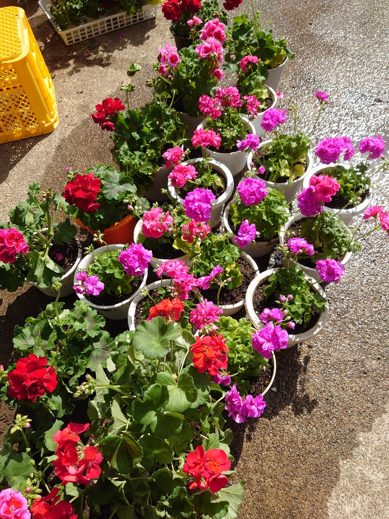 仕入れに出かける前に昨日買ってきてもらったゼラニウムを母が鉢に植え替えたので早速手すりの花箱に入れて飾りました。