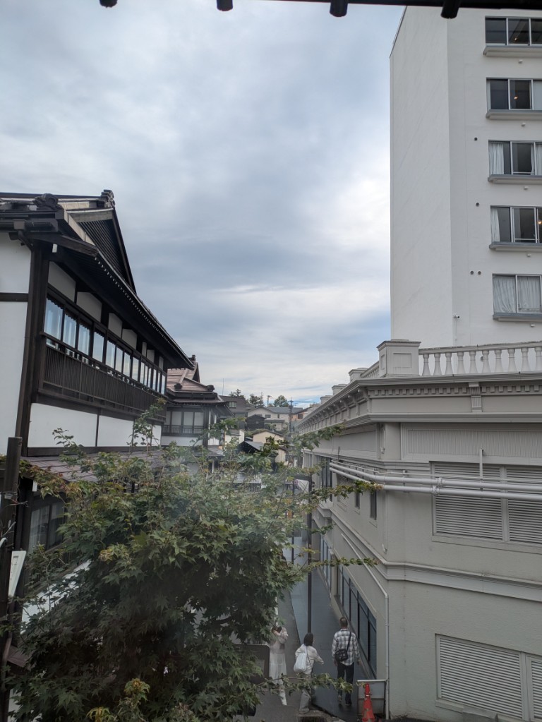 気温は当館玄関先の気温計で18℃近くまで上がっています。日差しがないわりには高めです。
