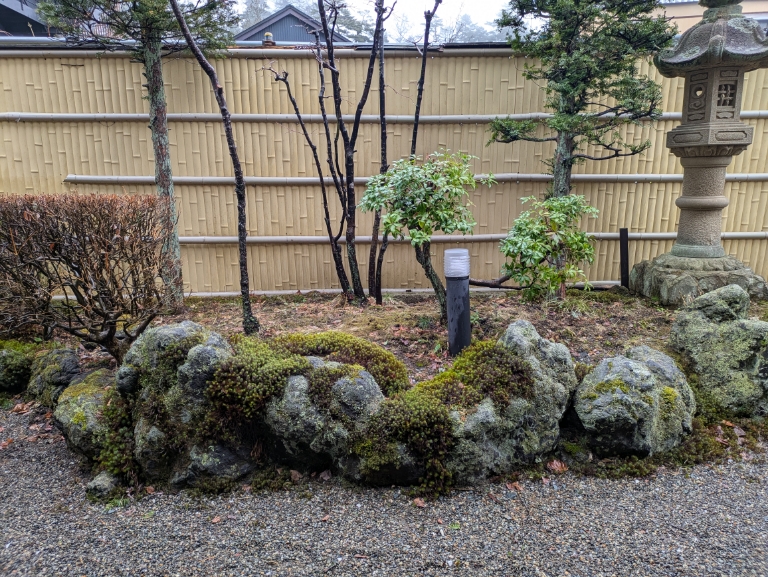 気温は当館玄関先の気温計で9℃まで届かず冷たい雨です。