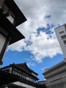 気温は当館玄関先の気温計で30℃近くまで上がっています。