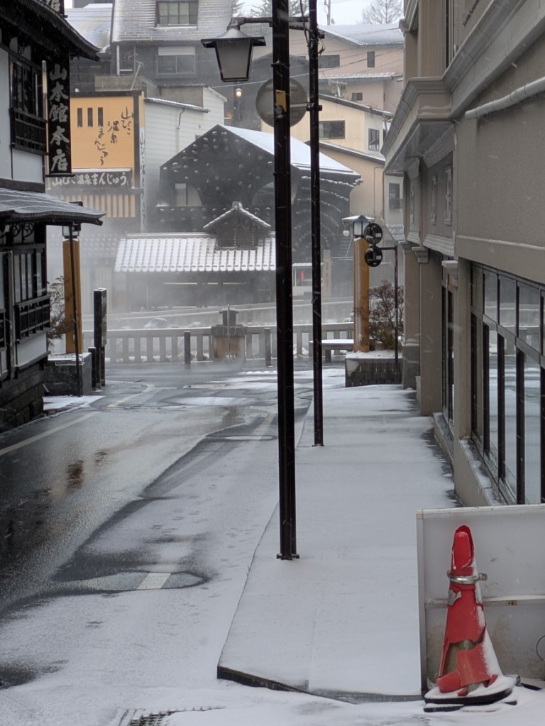 昨日は食材等の仕入れに行ってきましたが用事が足りず朝から1人で出かけてきました。朝は道路が白くなっていました。