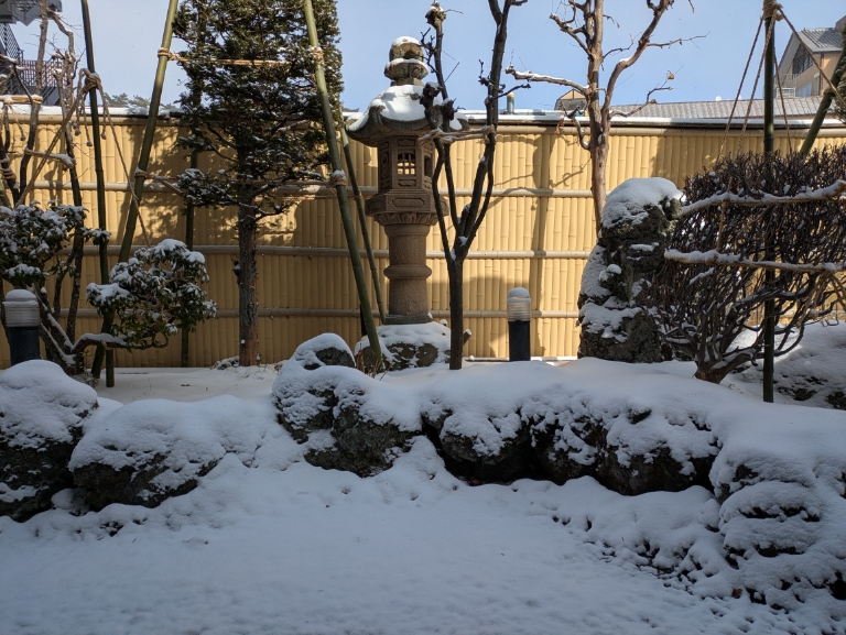 昨夜は雨降りでしたが朝起きたら雪景色になっていました。