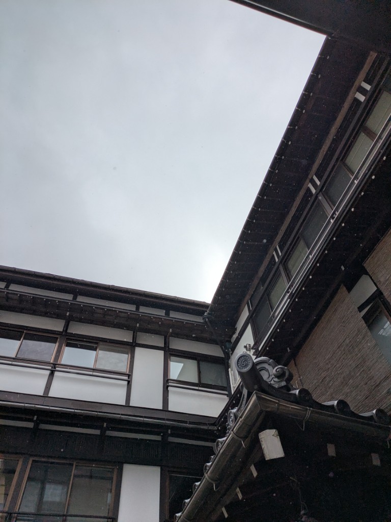 気温は当館玄関先の気温計で4℃と低くて空気が冷たいです。
