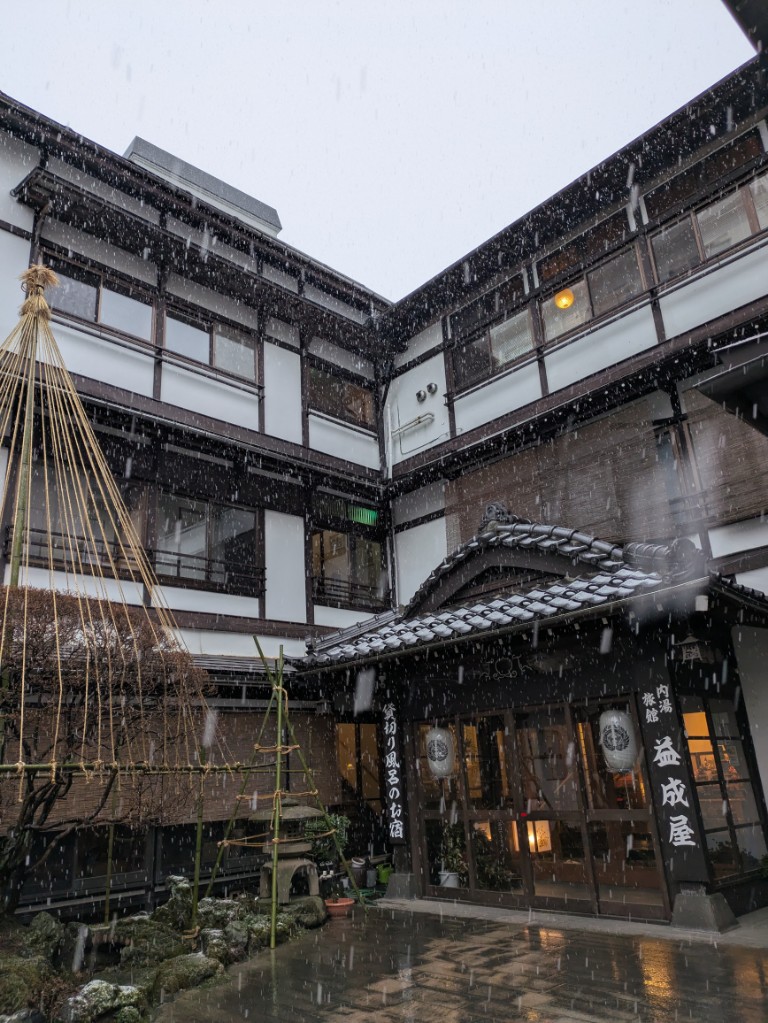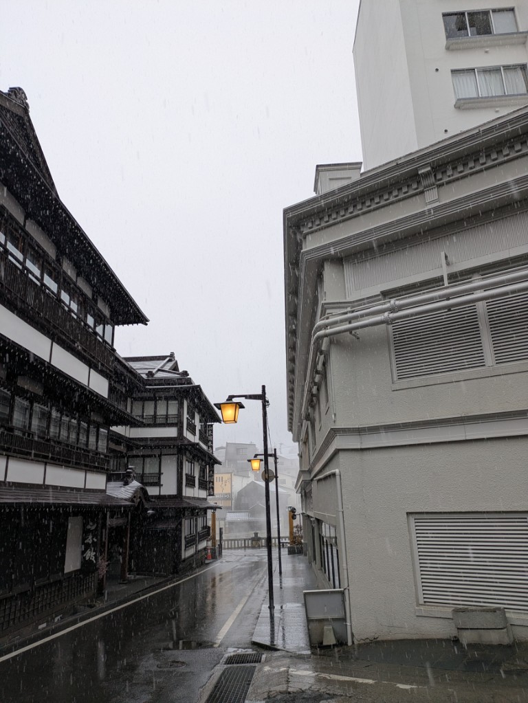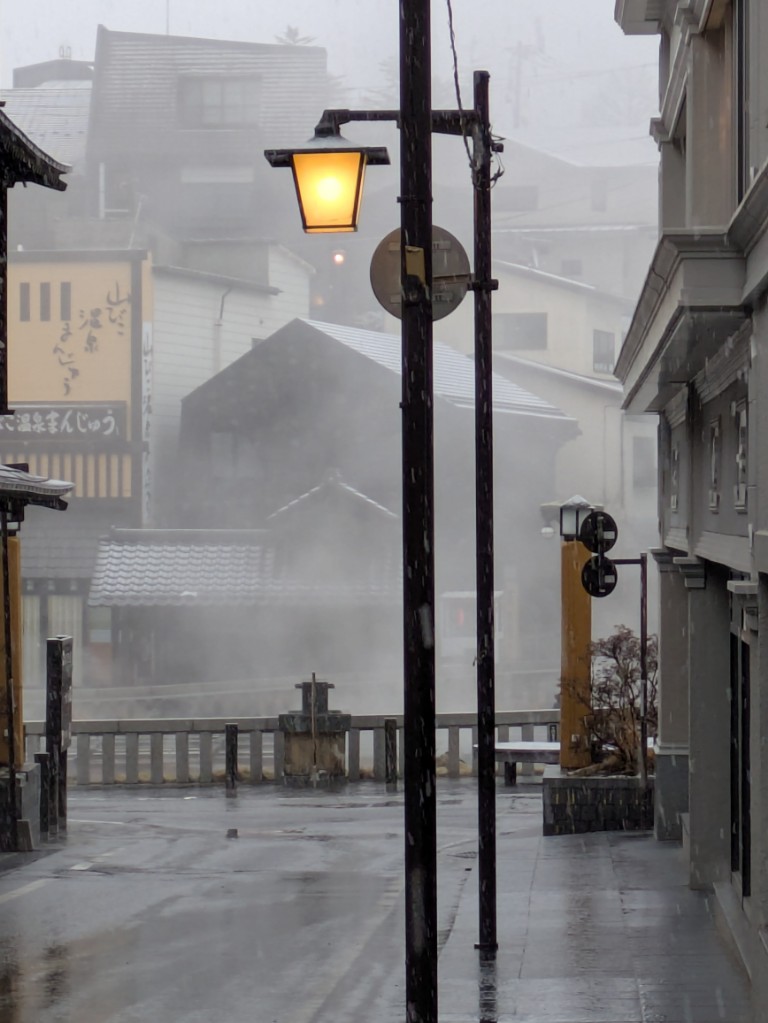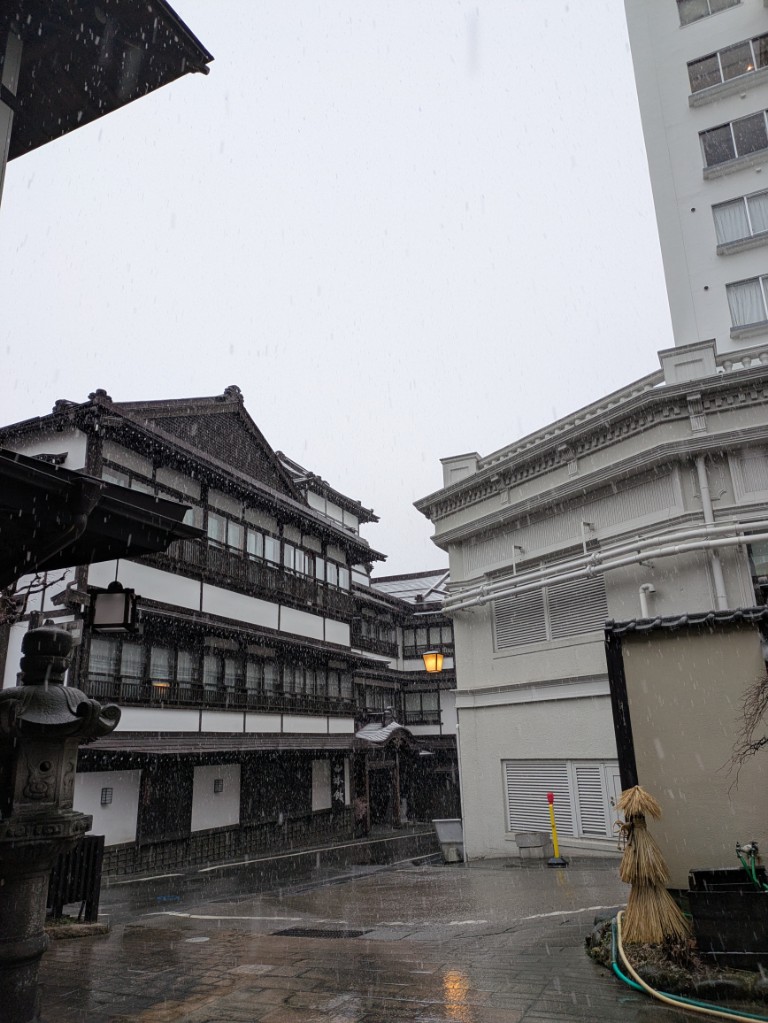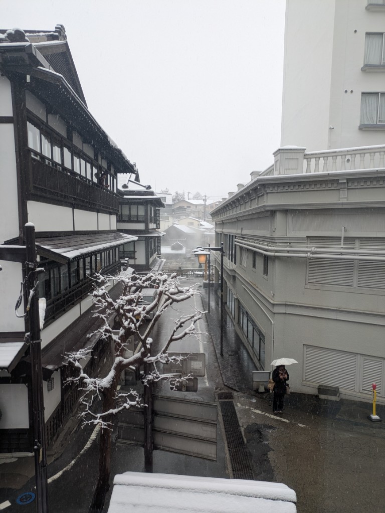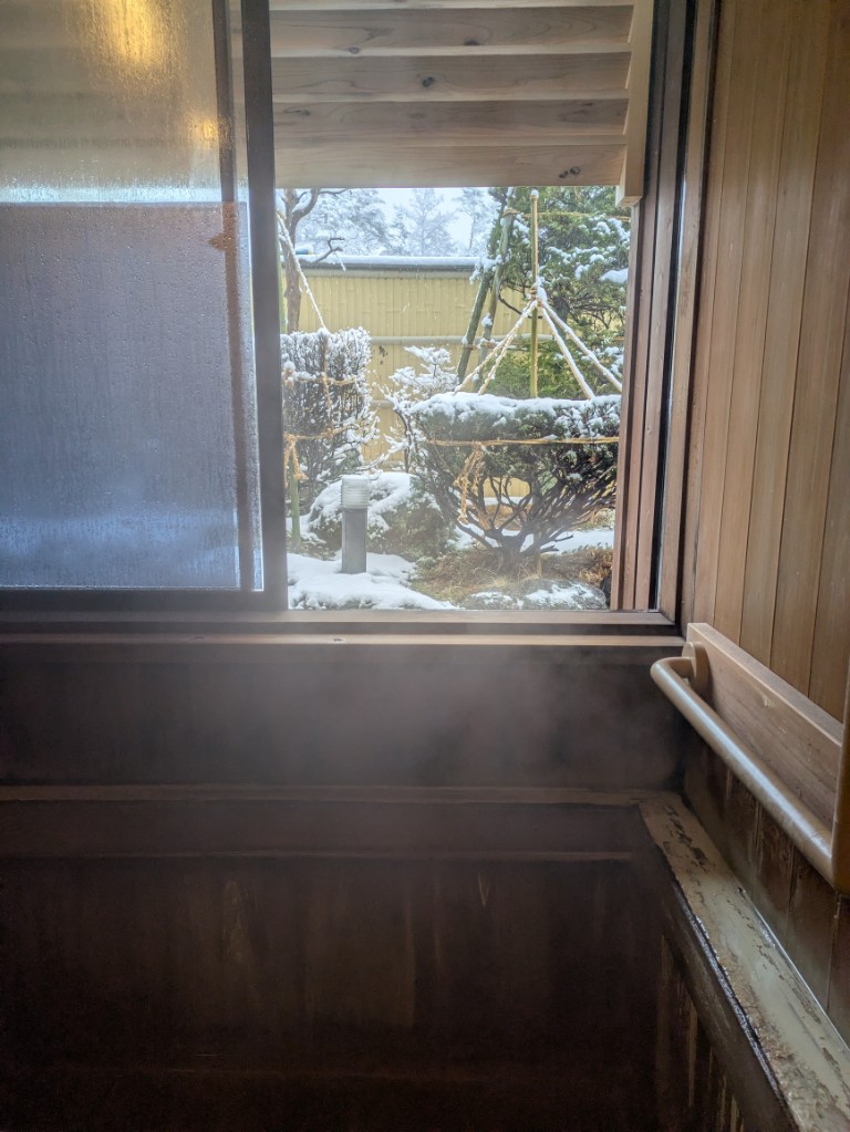 気温は当館玄関先の気温計で1℃と冬に戻りました。