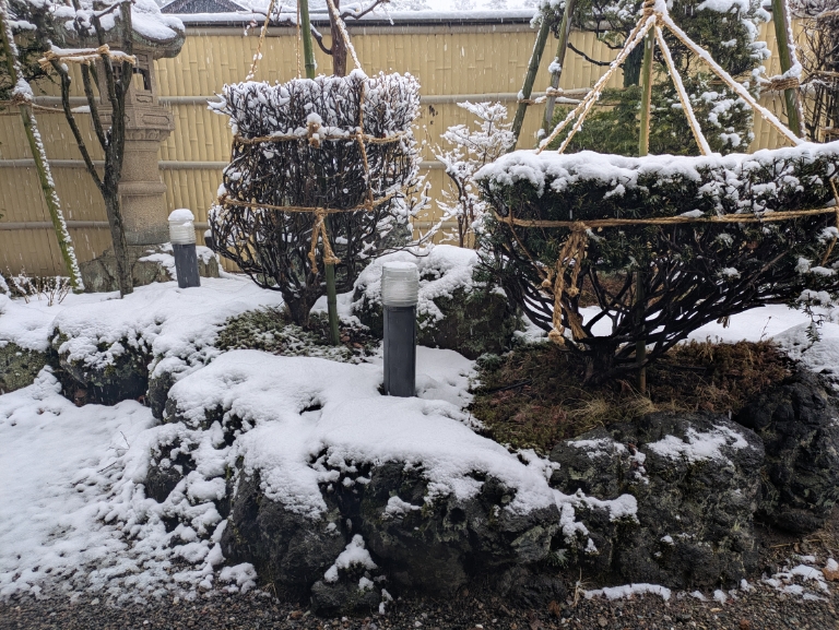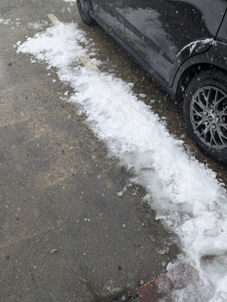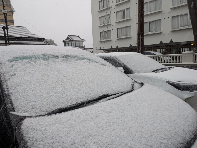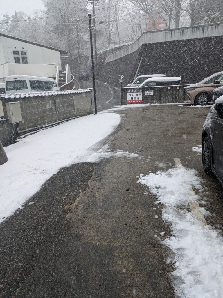 お客様のチェックアウト前に車の雪下ろしをしましたが湿った重たい雪が3cm位積もっていて重たくて大変でした。