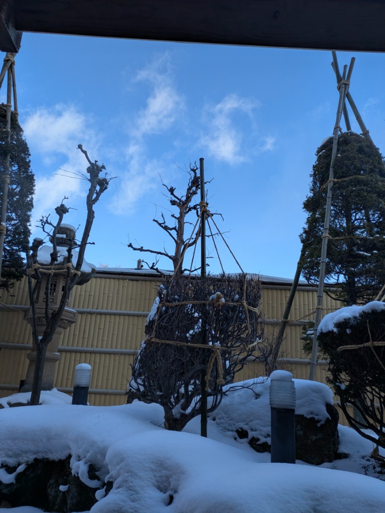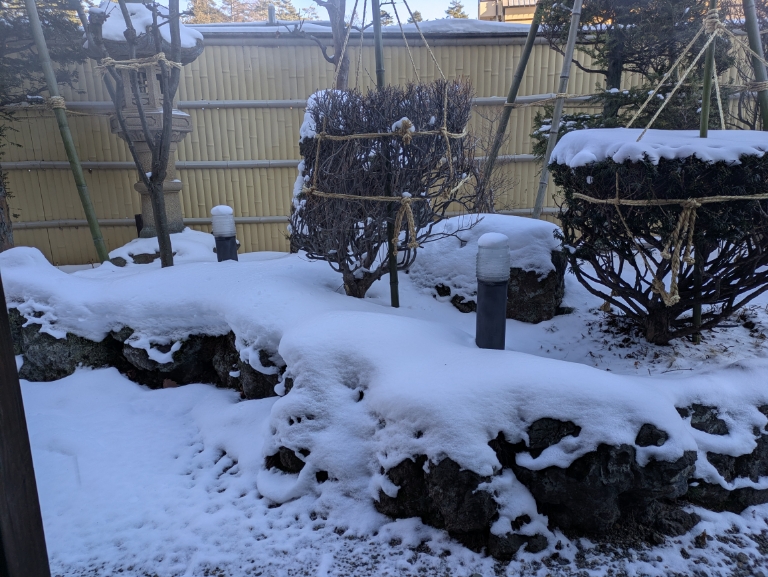気温は当館玄関先の気温計で−2℃と氷点下のままで冷え込んでいます。