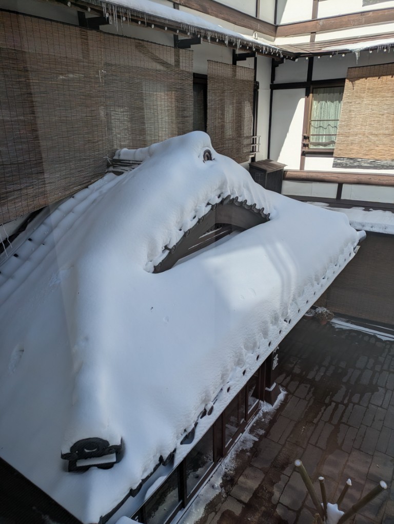 大雪ではありませんでしたが屋根の上には結構積もっています。