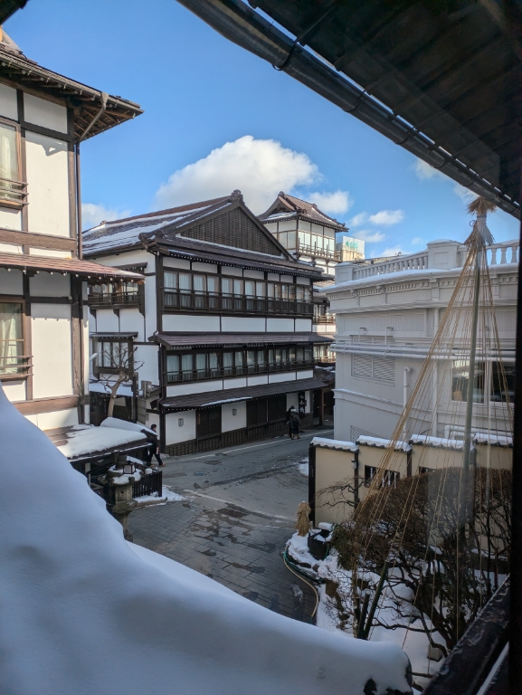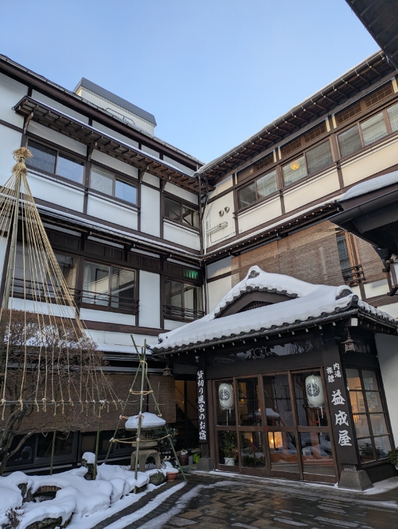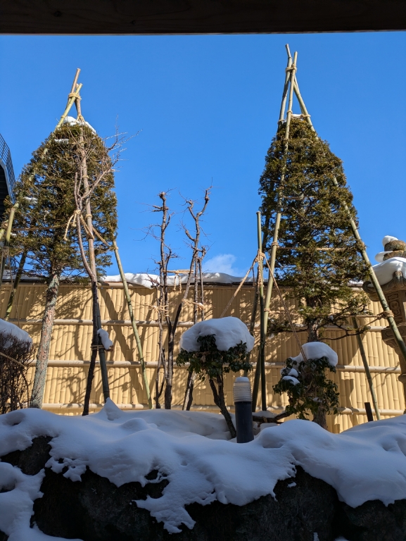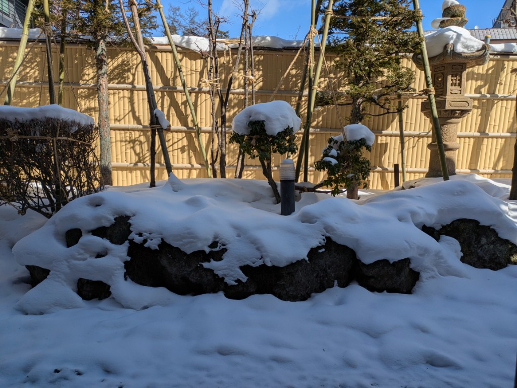 気温は当館玄関先の気温計で−3℃とお昼を過ぎても氷点下のままです。