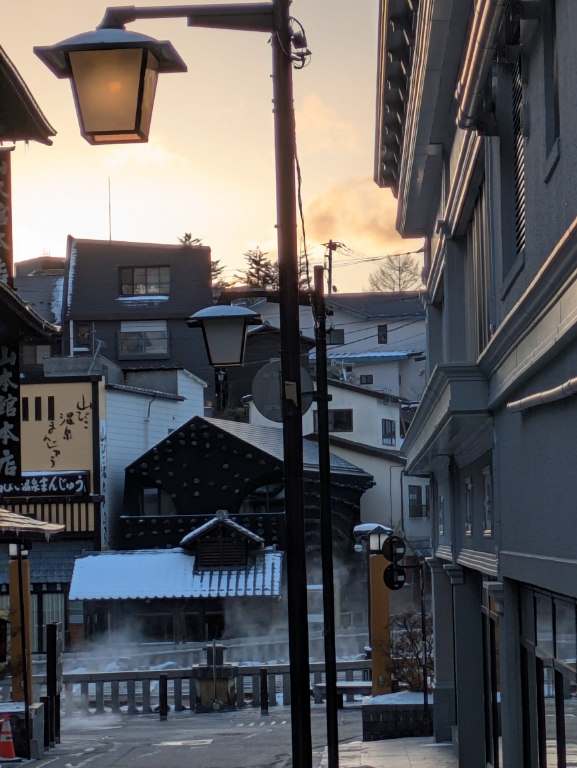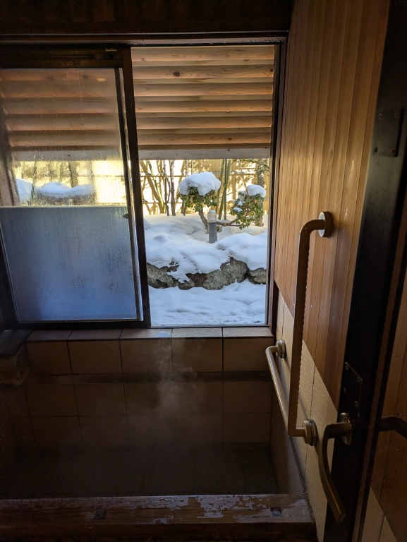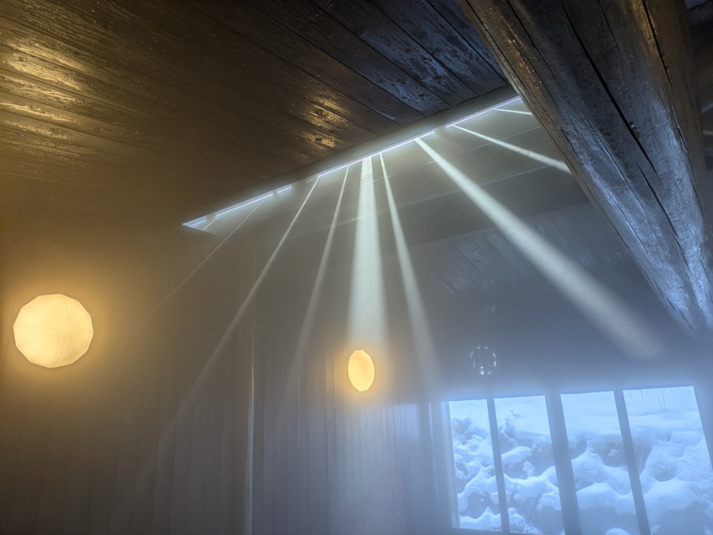 男性用大風呂の湯気が日差しに照らされて綺麗でした。
