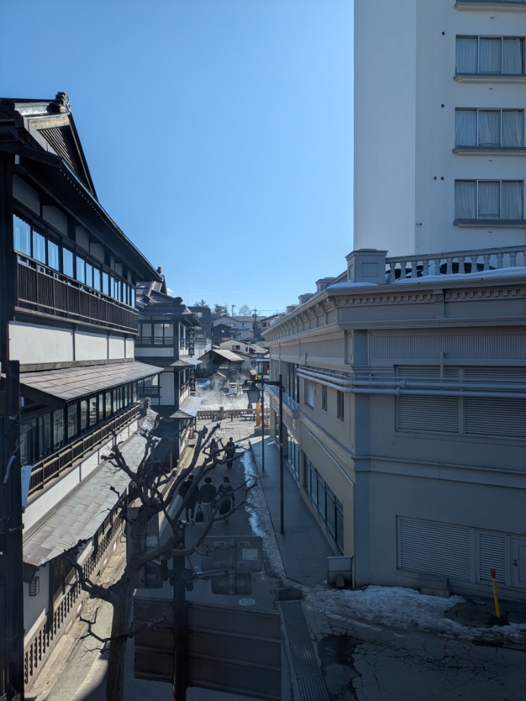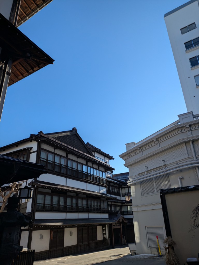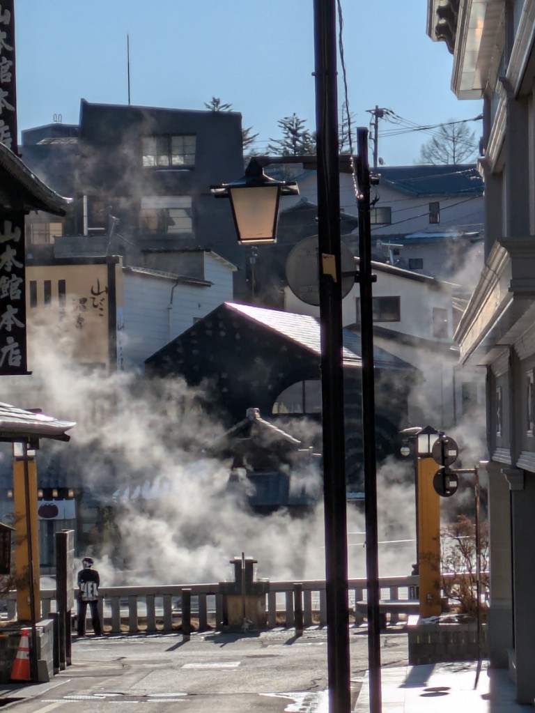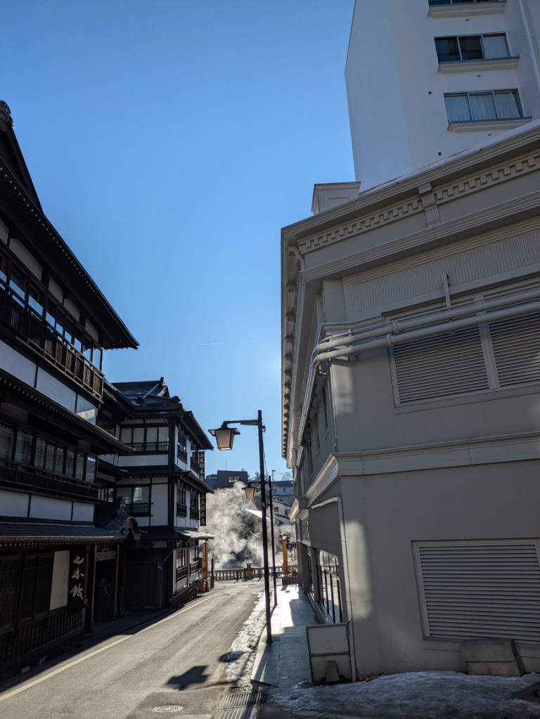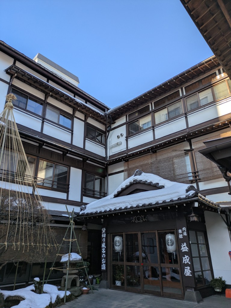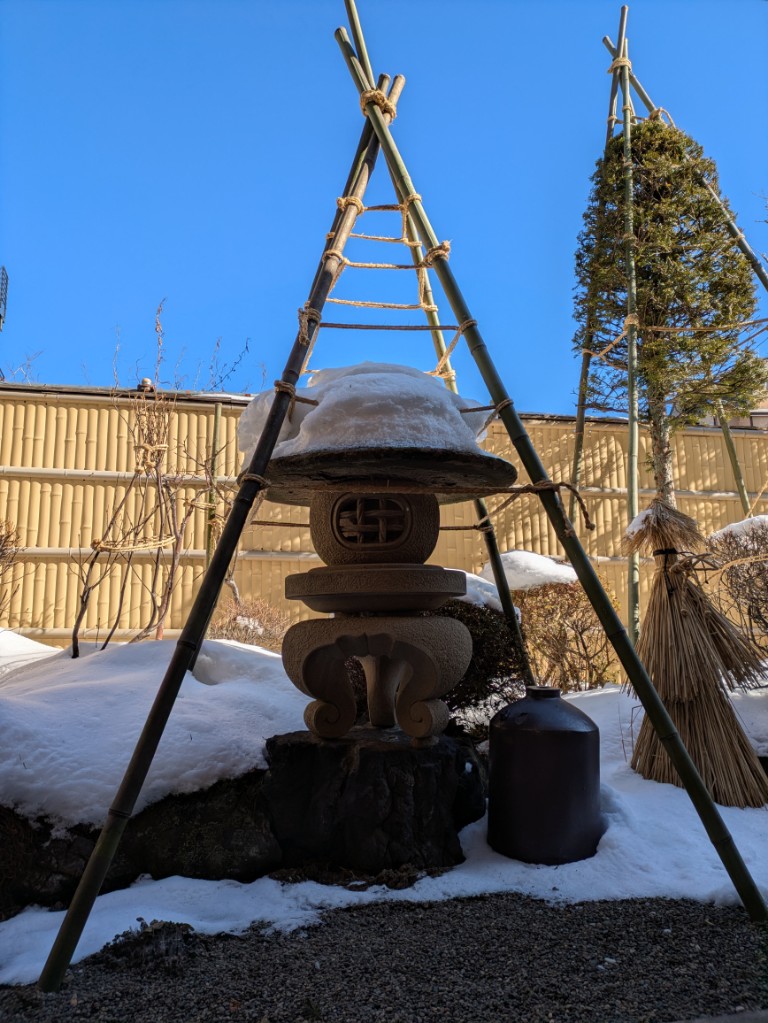 気温は当館玄関先の気温計で3℃と氷点下ではありませんが寒くなっています。
