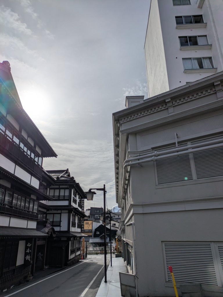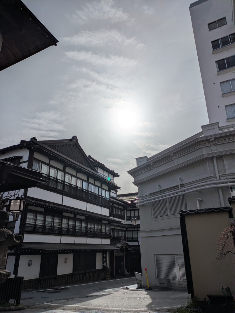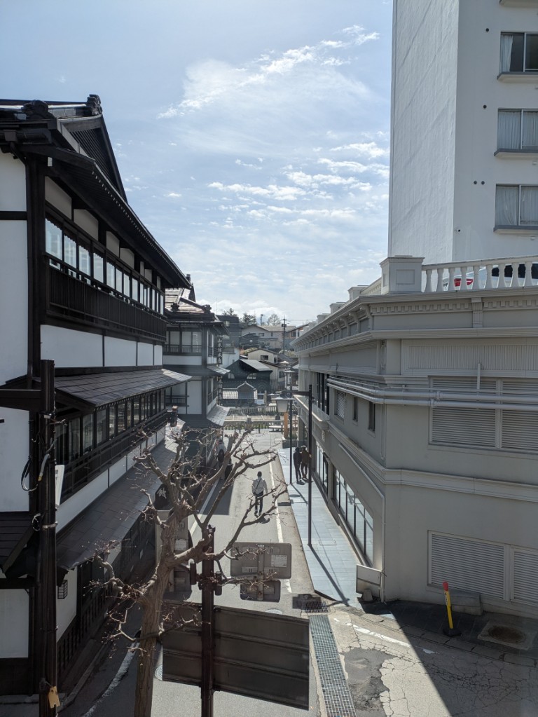 気温は当館玄関先の気温計で15℃を少し超えています。