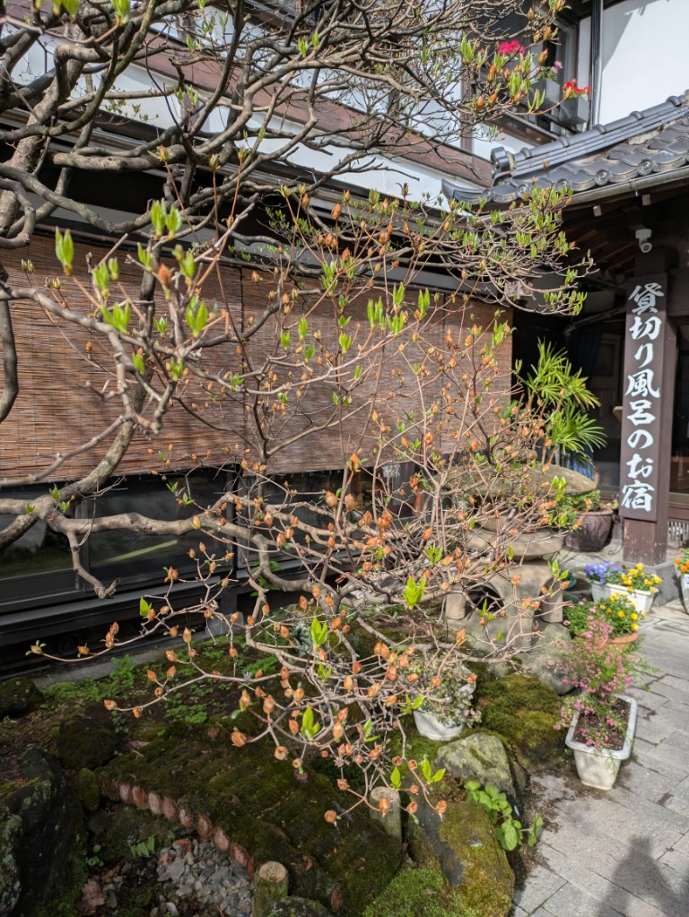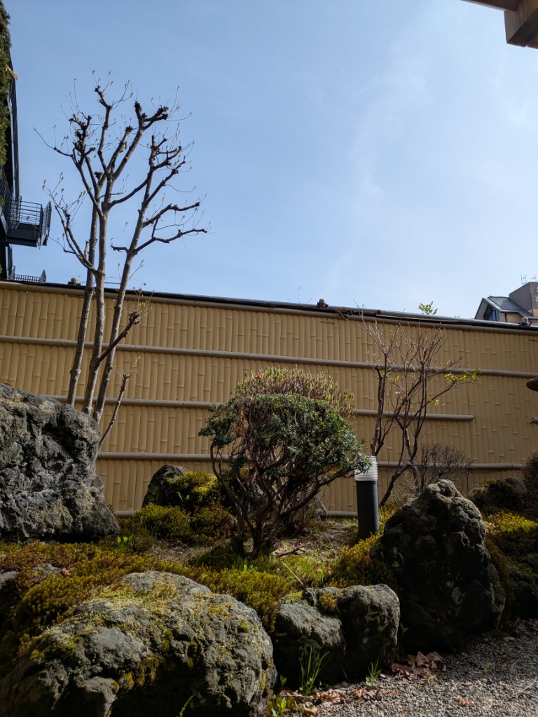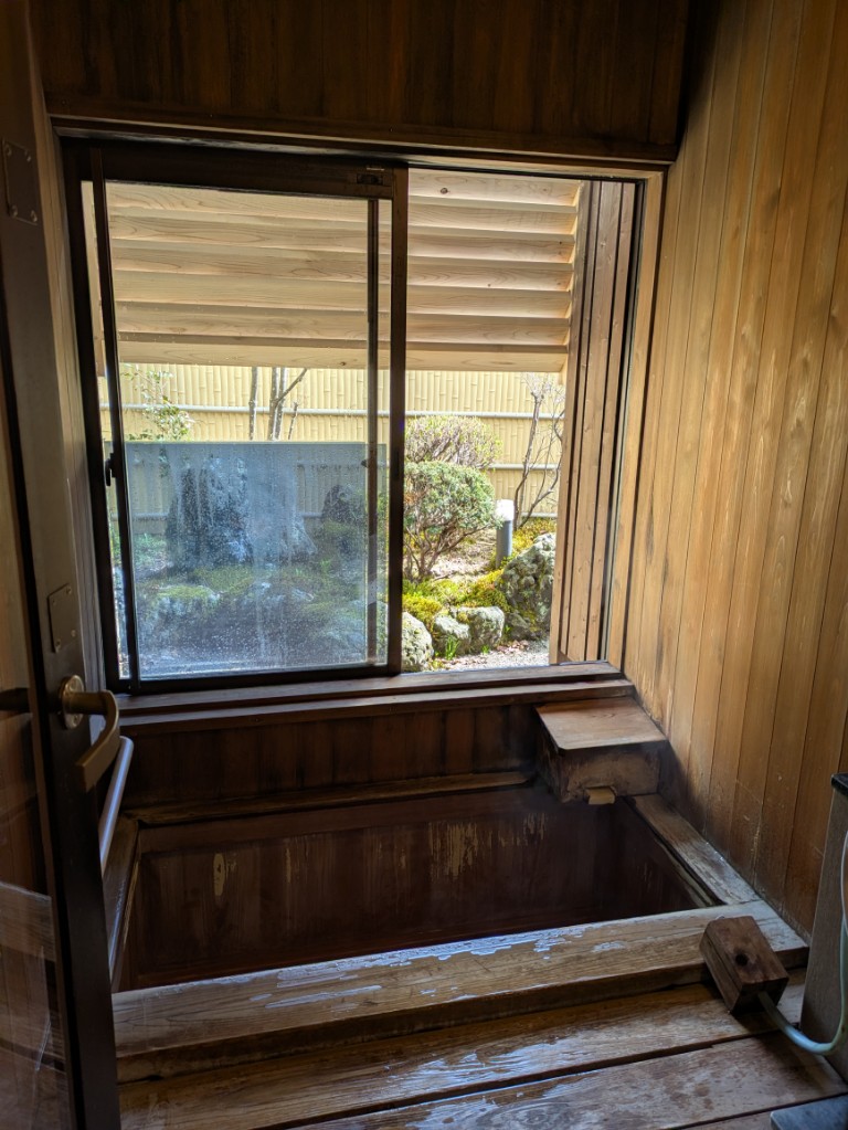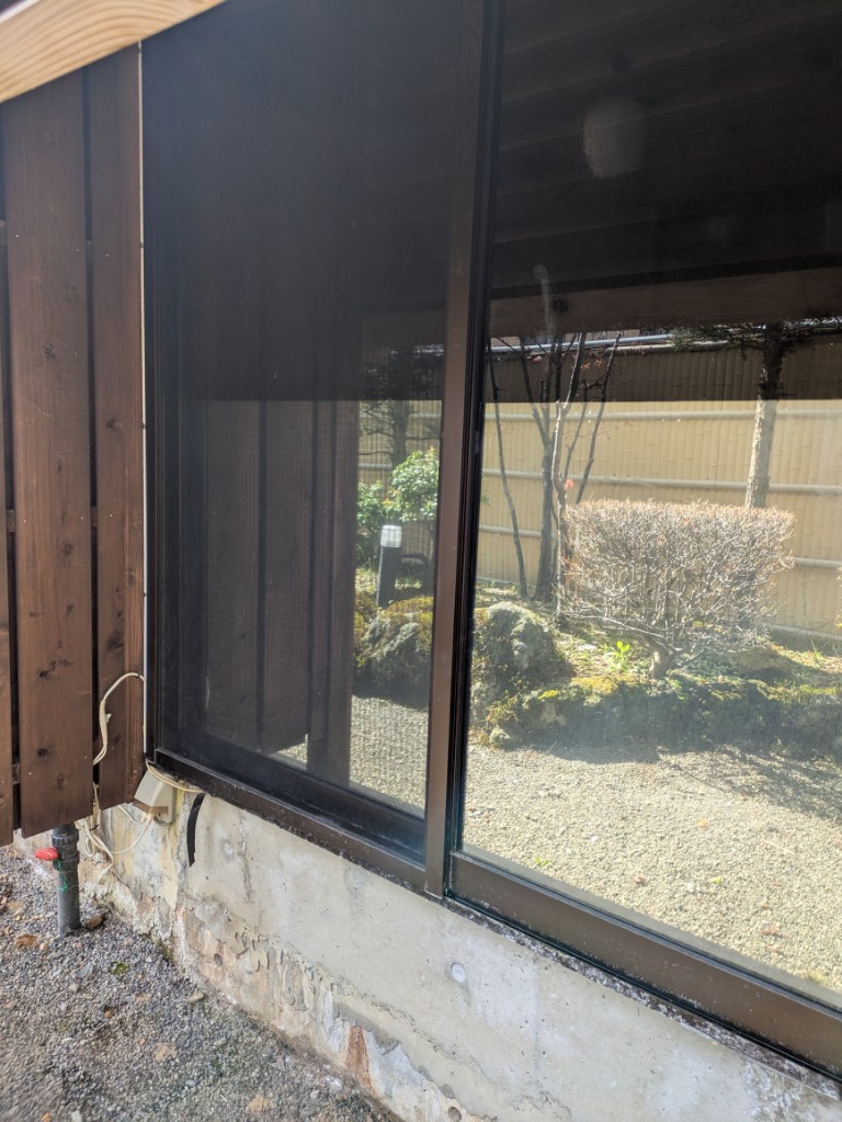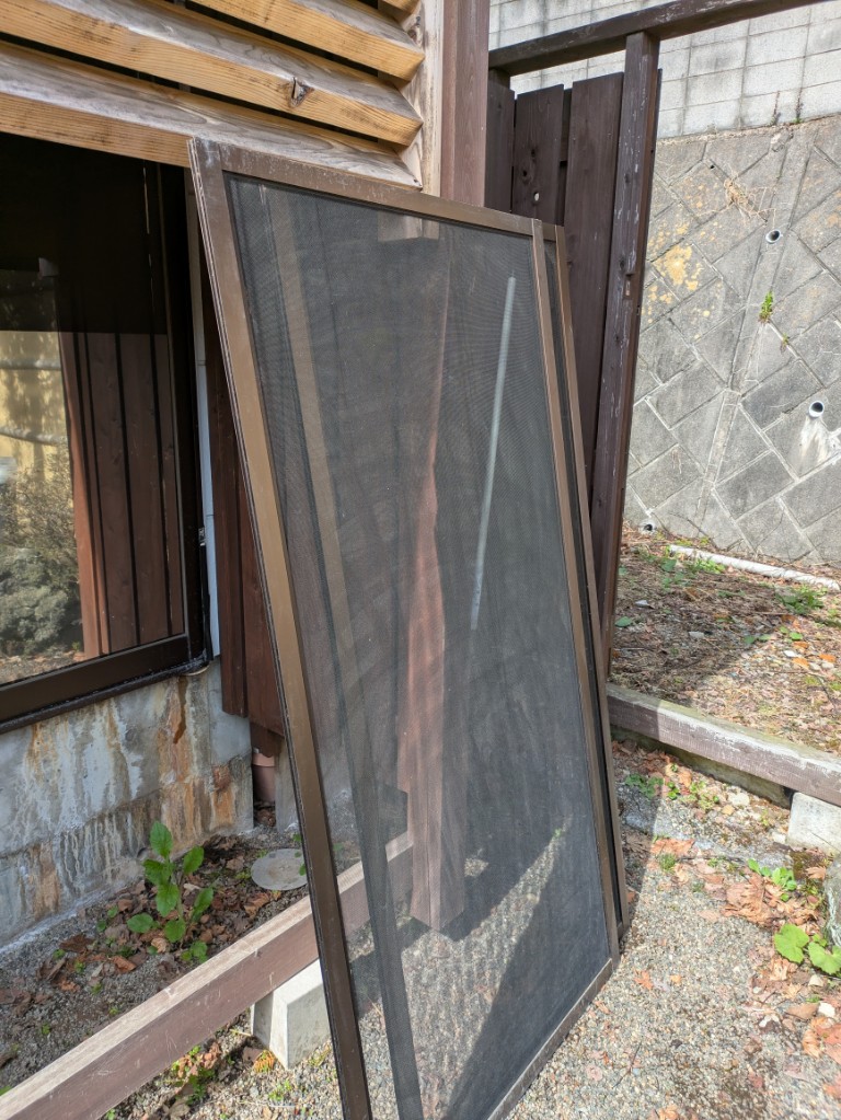 まだ虫は飛んでいませんがだいぶ暖かくなってきましたので貸切風呂窓の網戸を入れました。