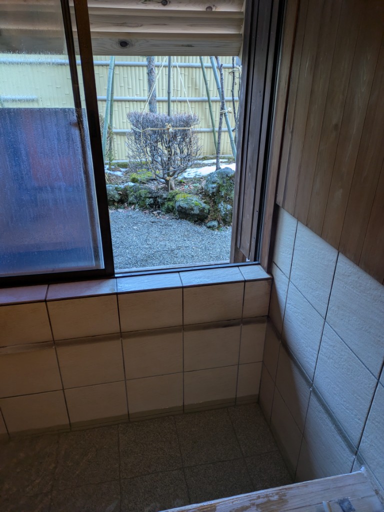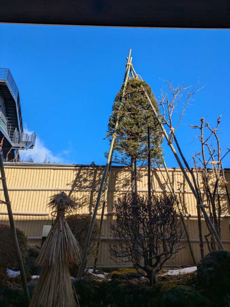 日差しがありますが気温は当館玄関先の気温計で1℃と気温は上がらず寒くなっています。