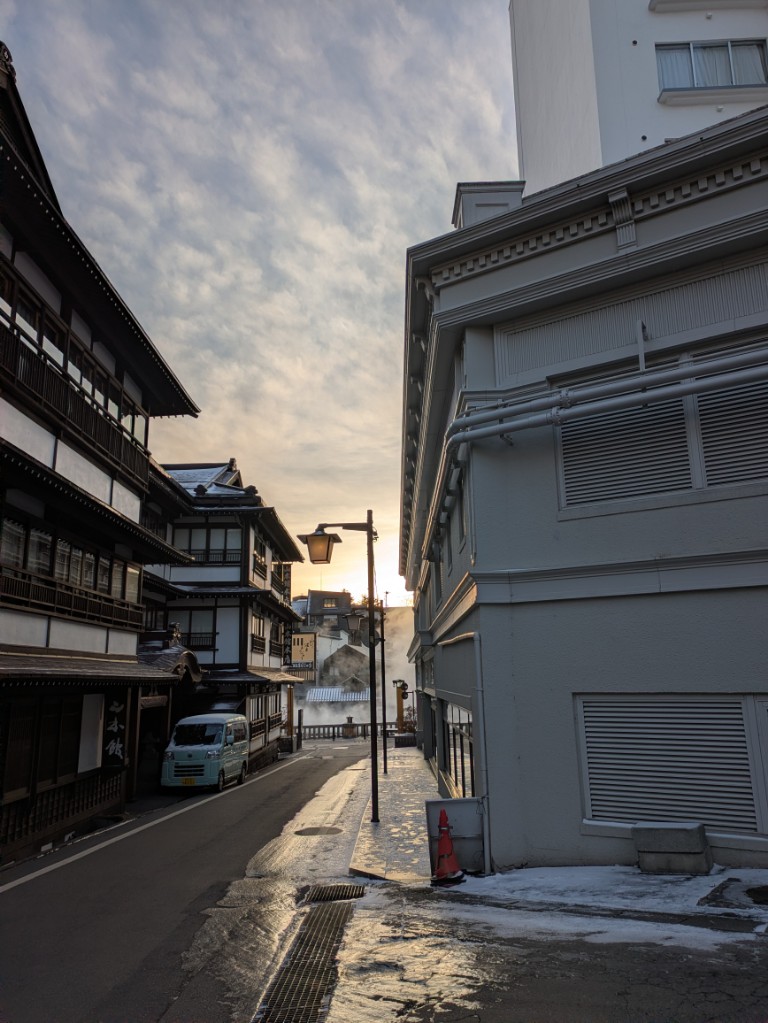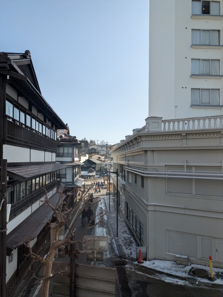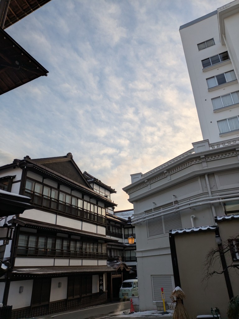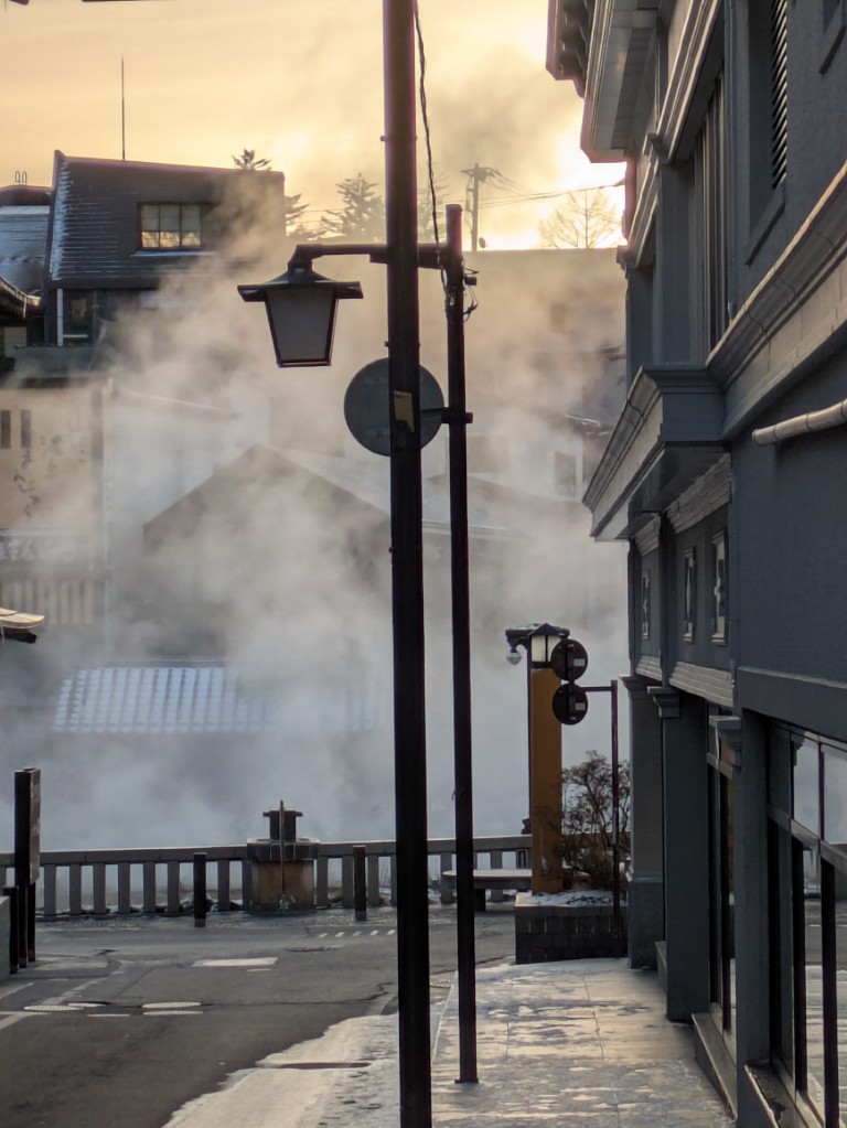 穏やかとはいえ気温は当館玄関先の気温計で2℃と真冬の寒さです。朝方は−3℃でしたので大して上がっていません。