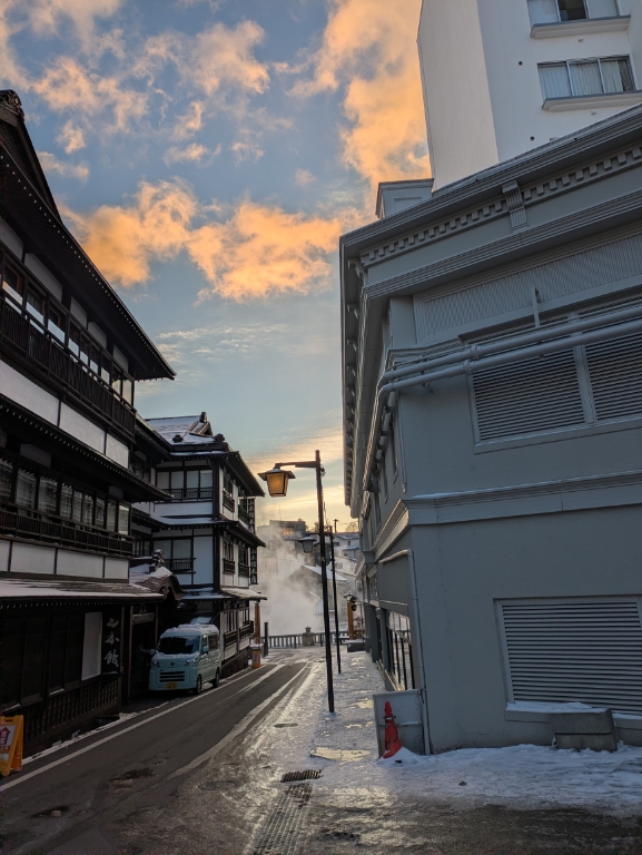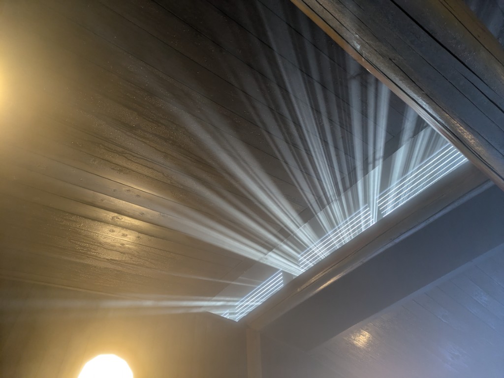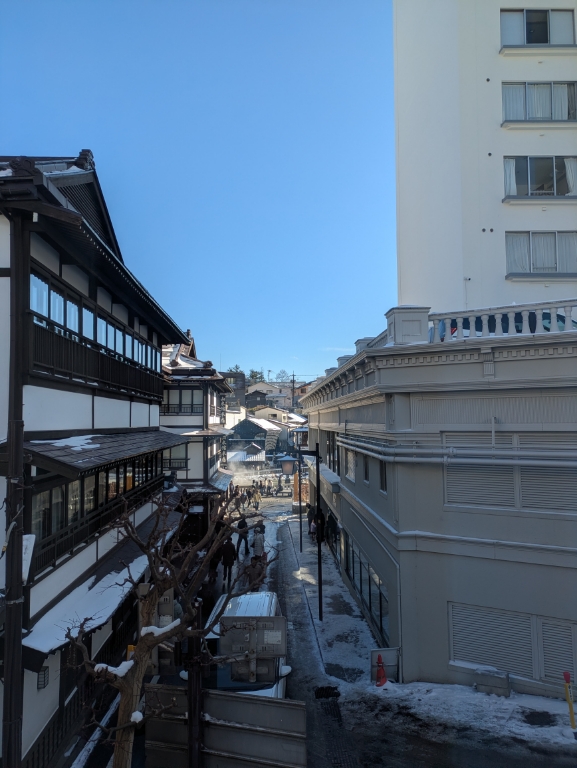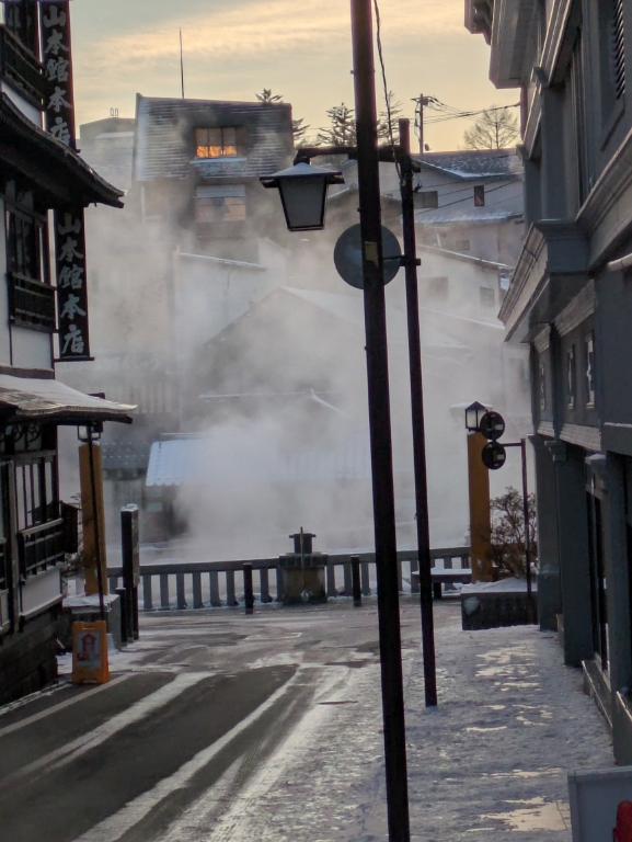 大風呂の湯気が陽に照らされて綺麗でした。