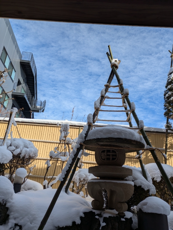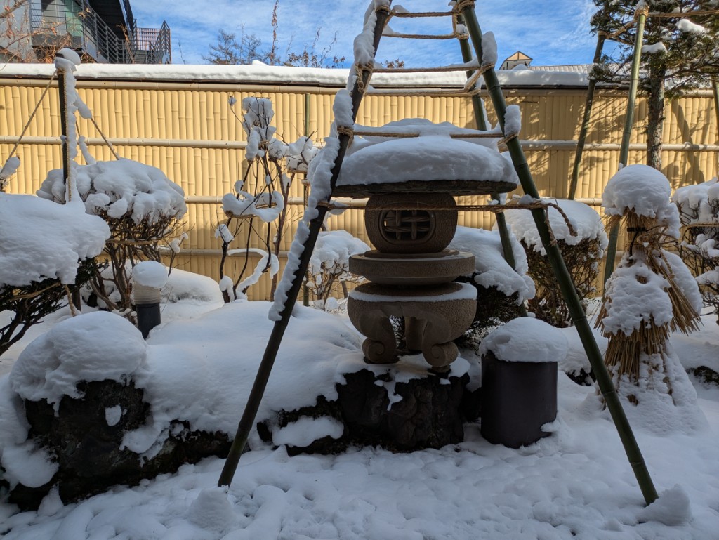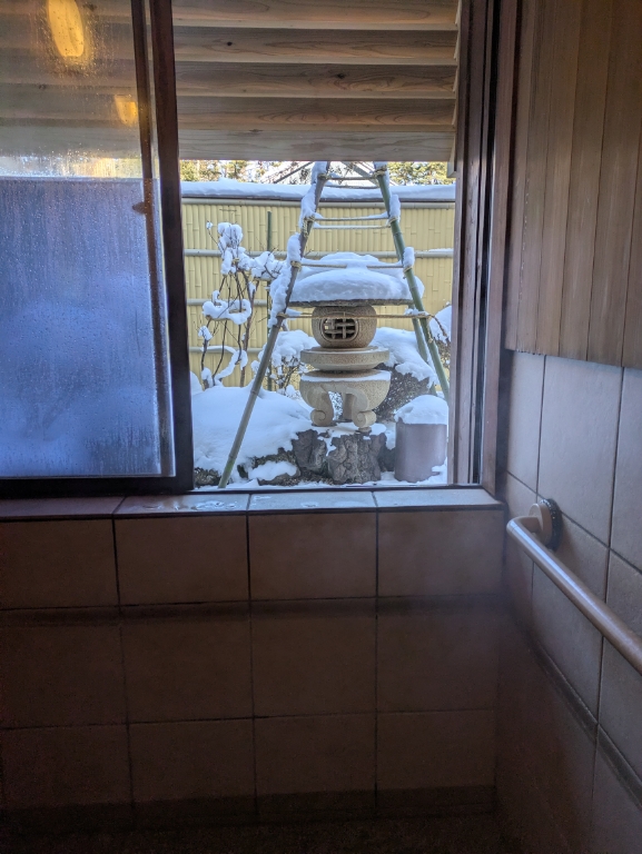 貸切風呂庭も雪景色に戻りました。