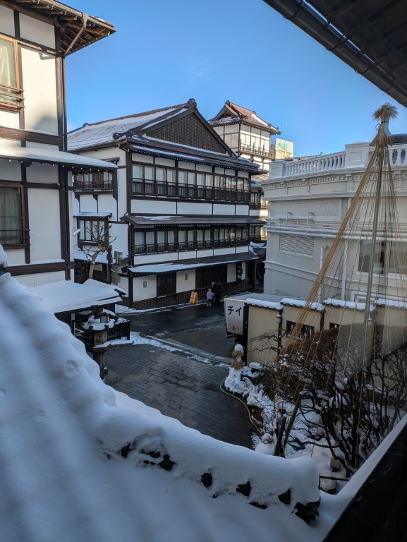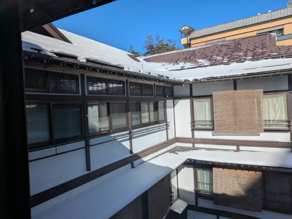 気温は当館玄関先の気温計で0℃です。