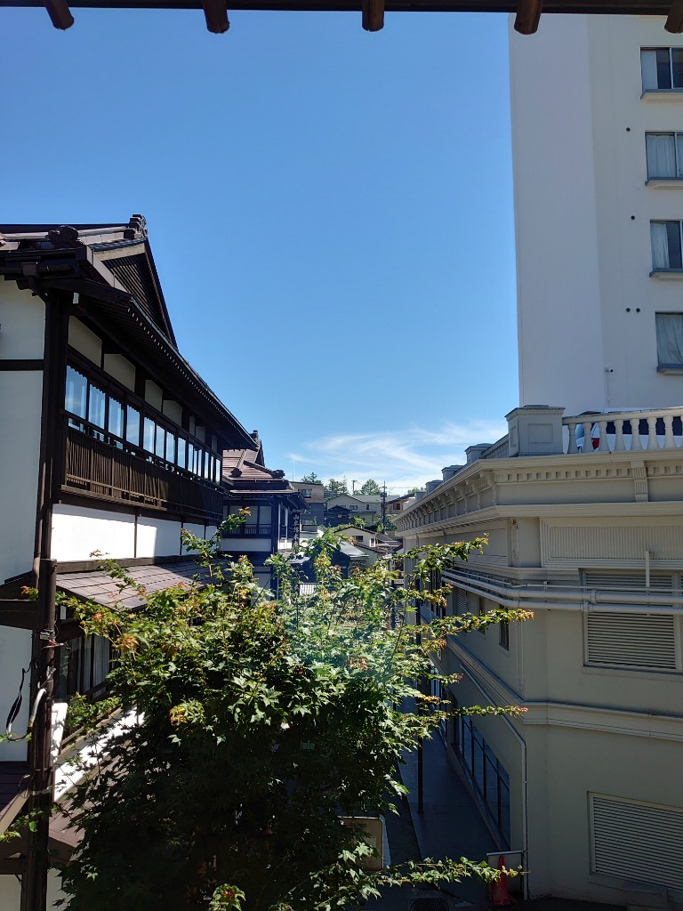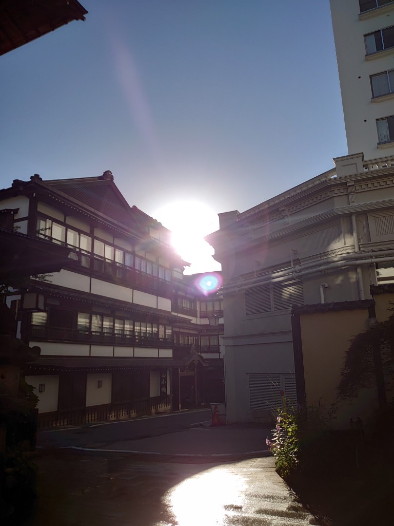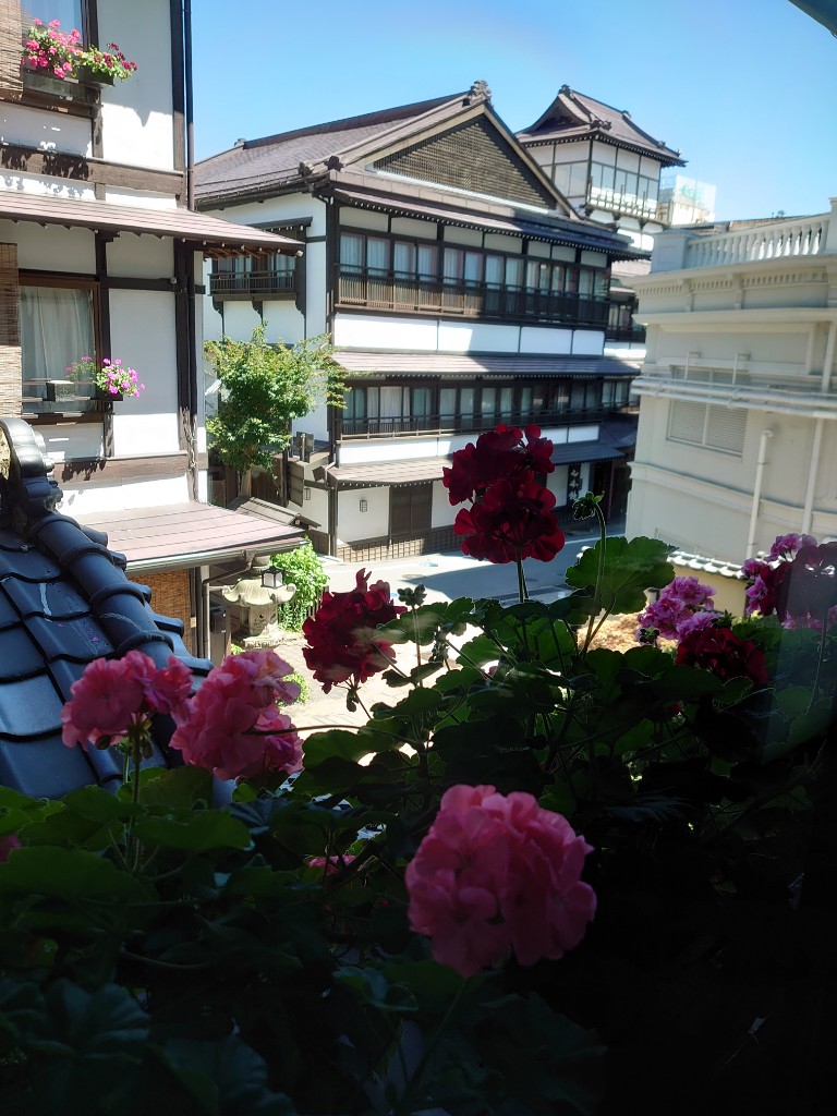 気温は当館玄関先の気温計で28℃まで上がっています。
