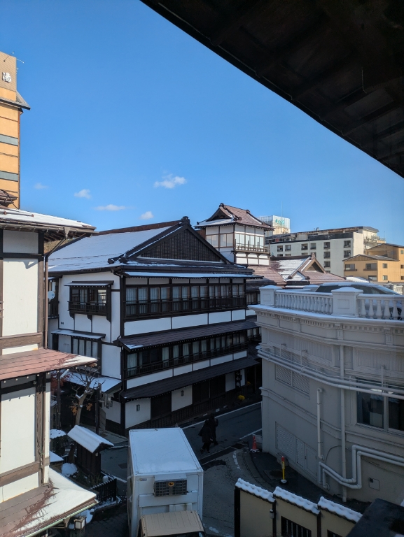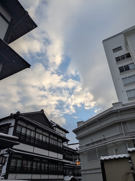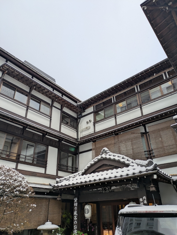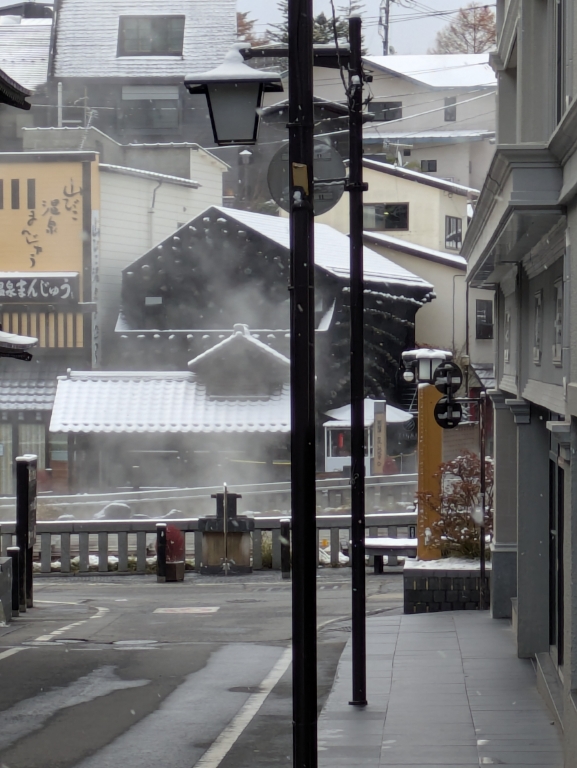 温泉街も初雪が降りましたのでお車でお越しのお客様は冬用タイヤの装着やタイヤチェーンの携行をお願いいたします。ノーマルタイヤでお越しになるのは大変危険ですので十分ご注意ください。