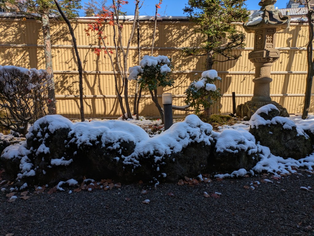 すぐにとけて無くなると思いますが今シーズン初の雪景色となっていました。