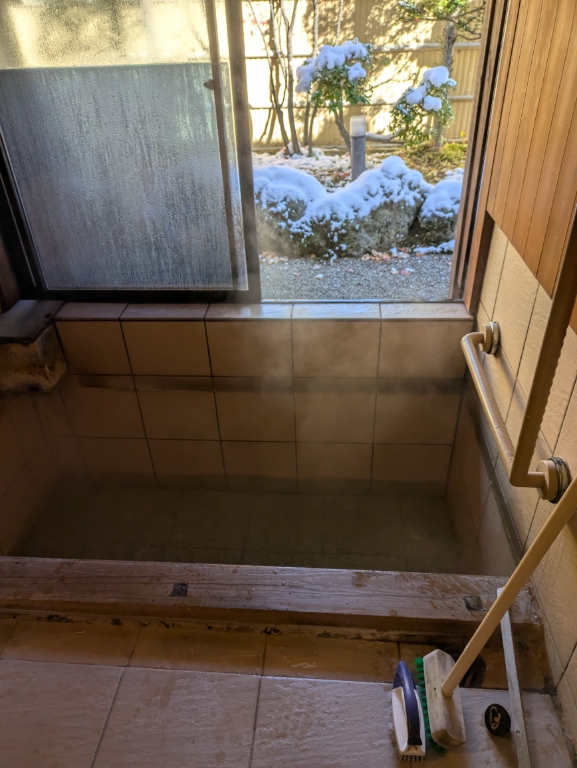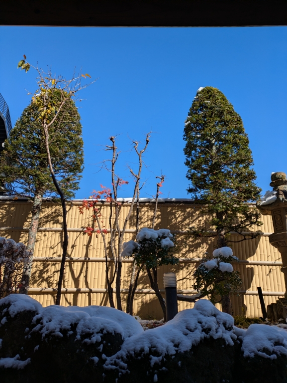 気温は当館玄関先の気温計で3℃に届かずぐっと冷え込んで寒くなっています。