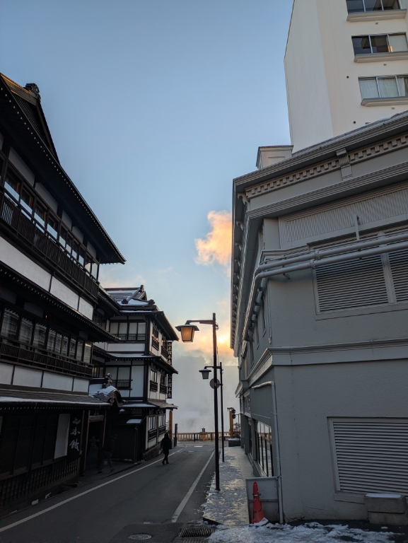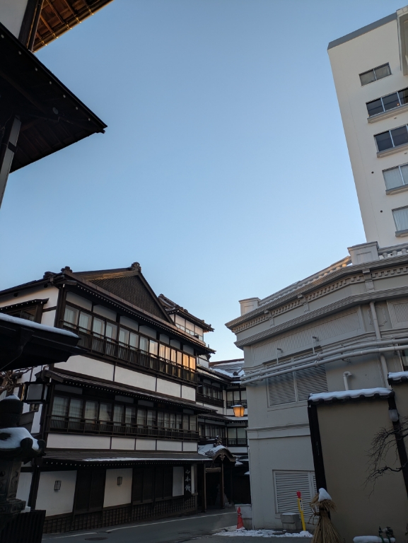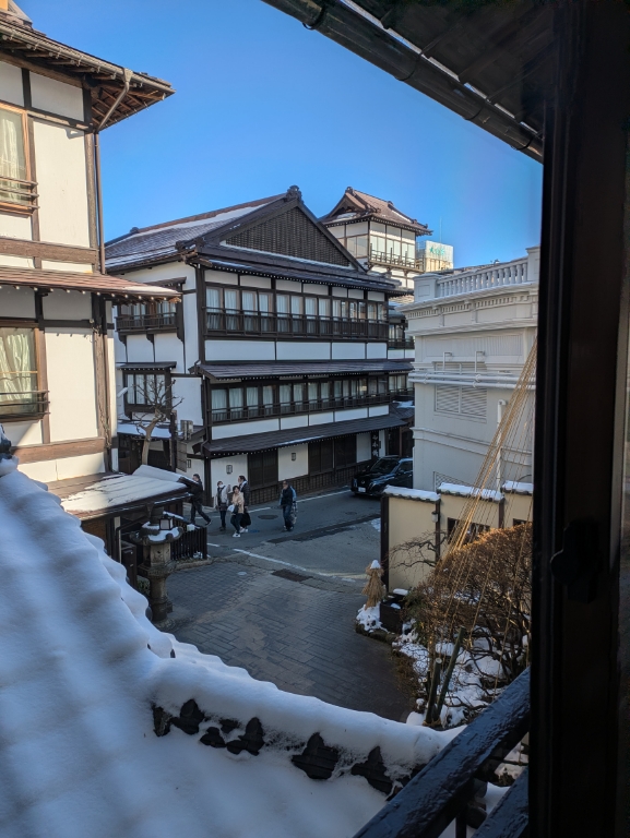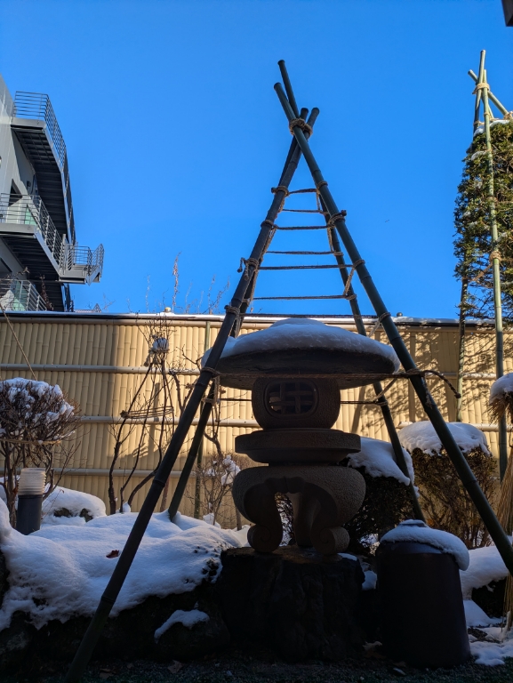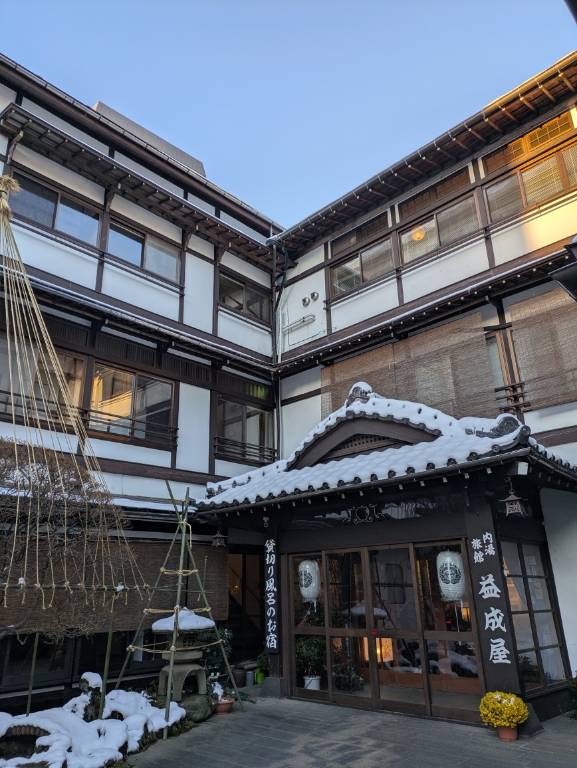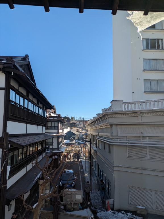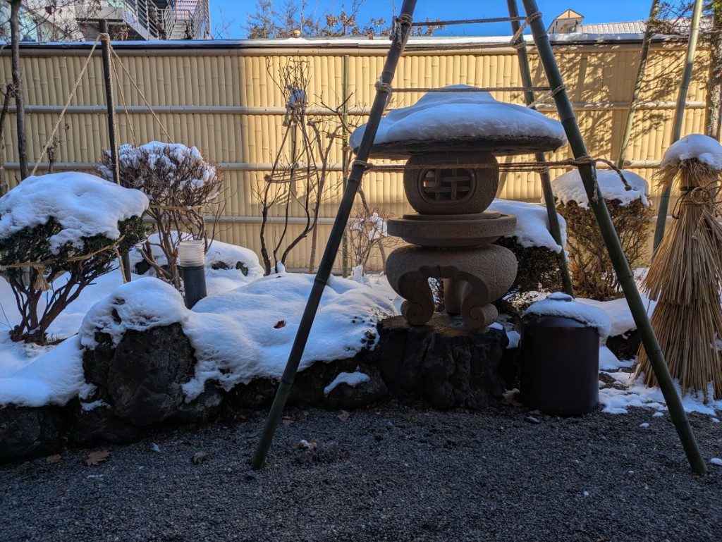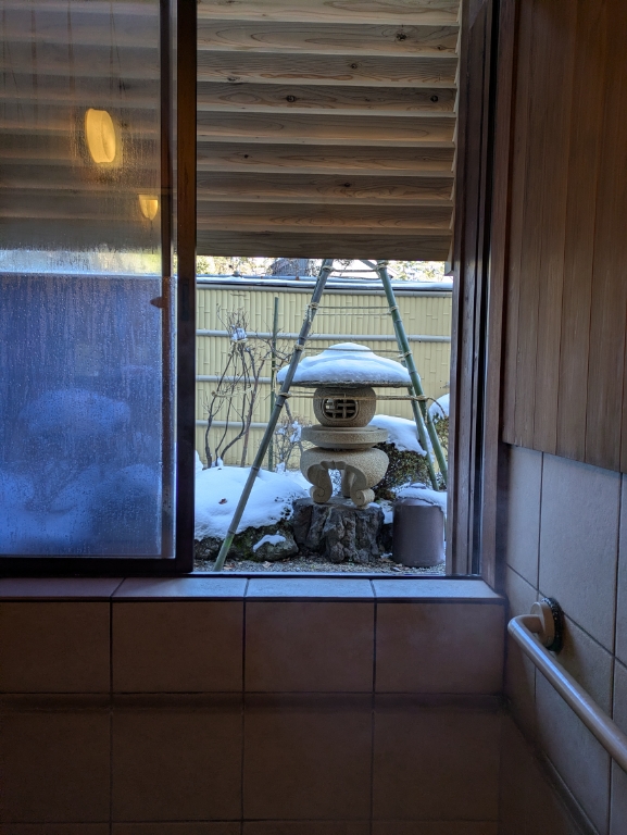 気温は当館玄関先の気温計で5℃近くまで上がってきました。今朝は−4℃以下まで下がっていました。