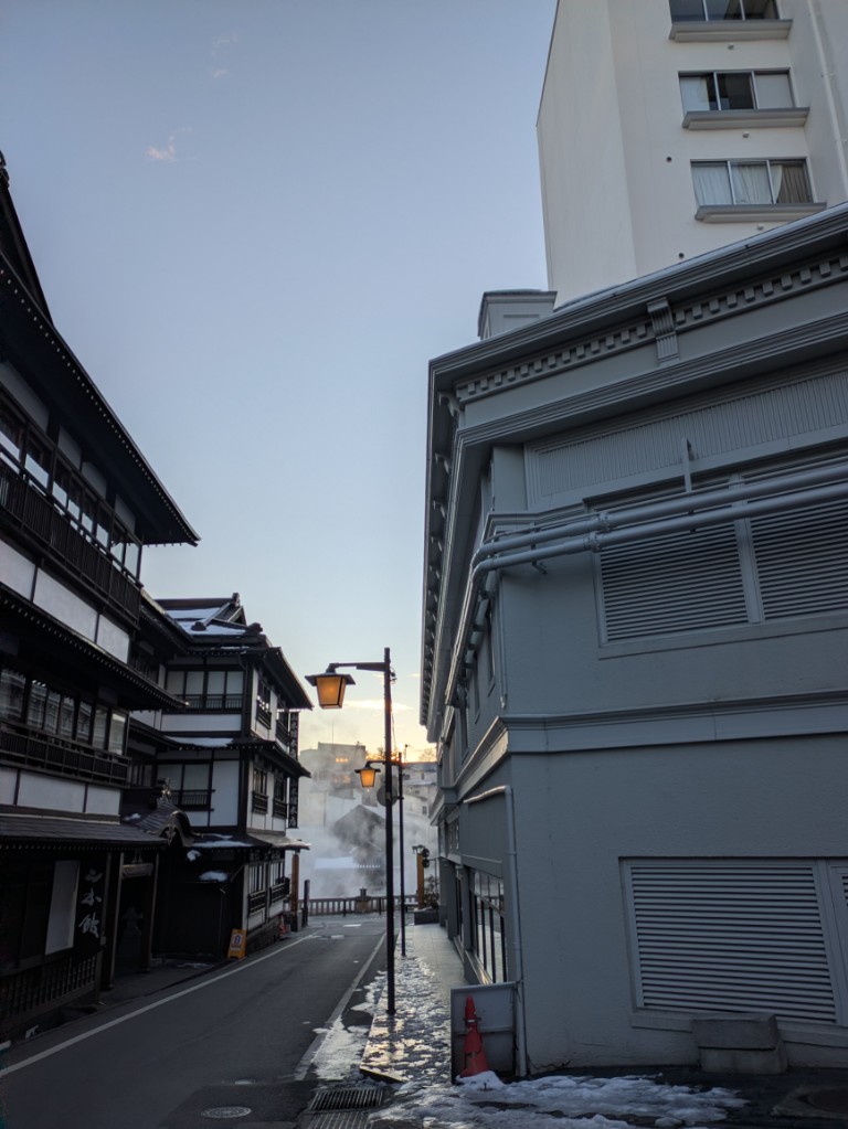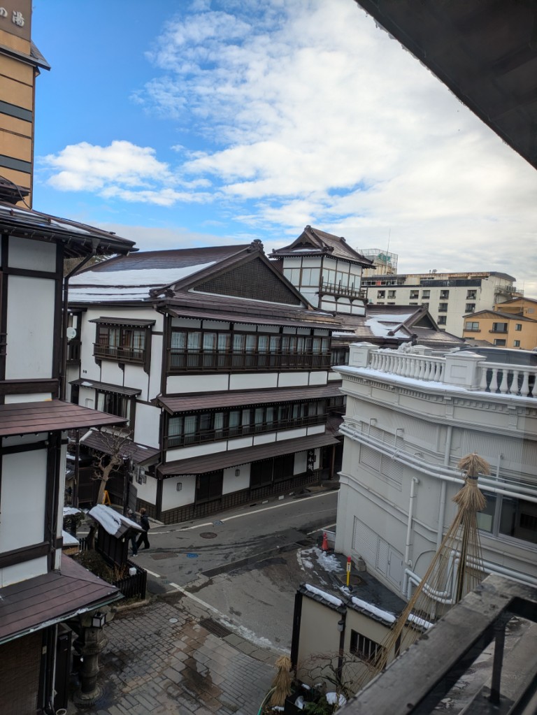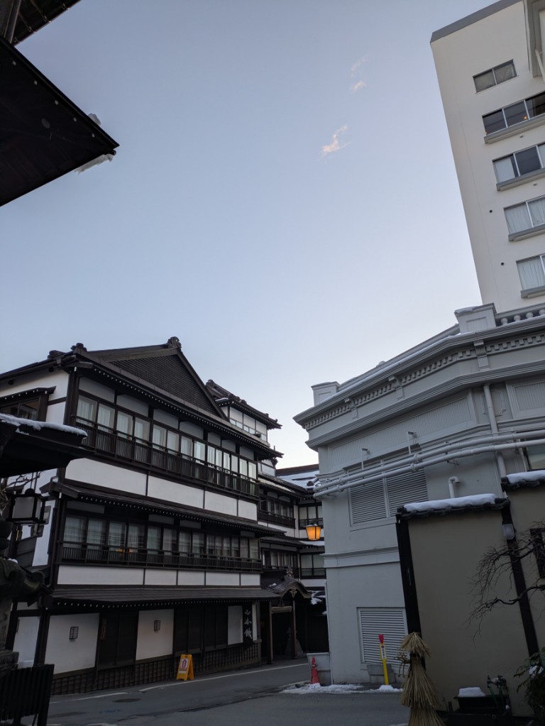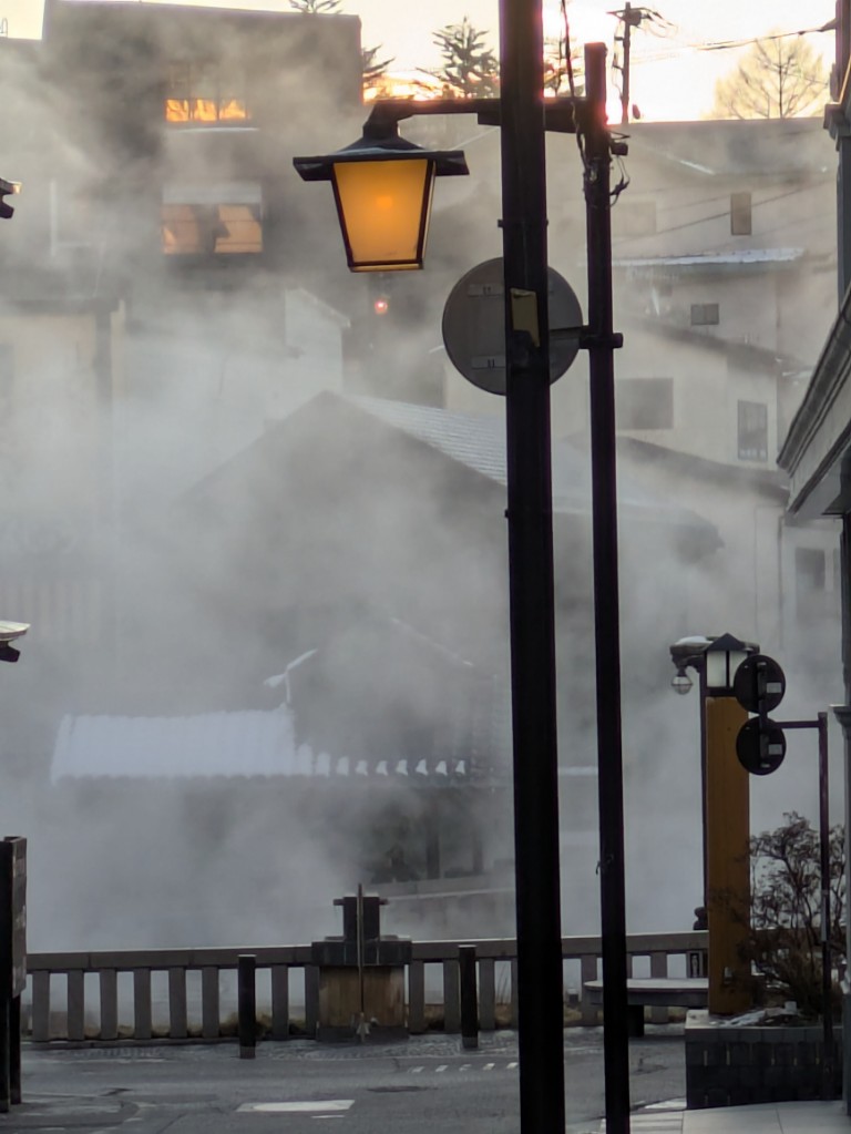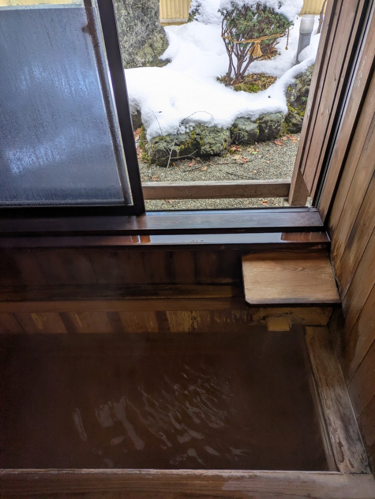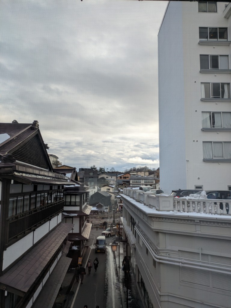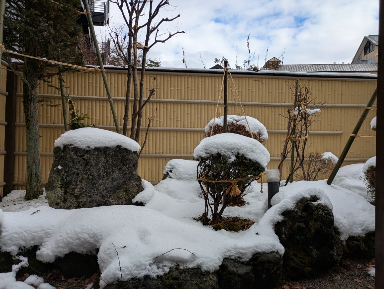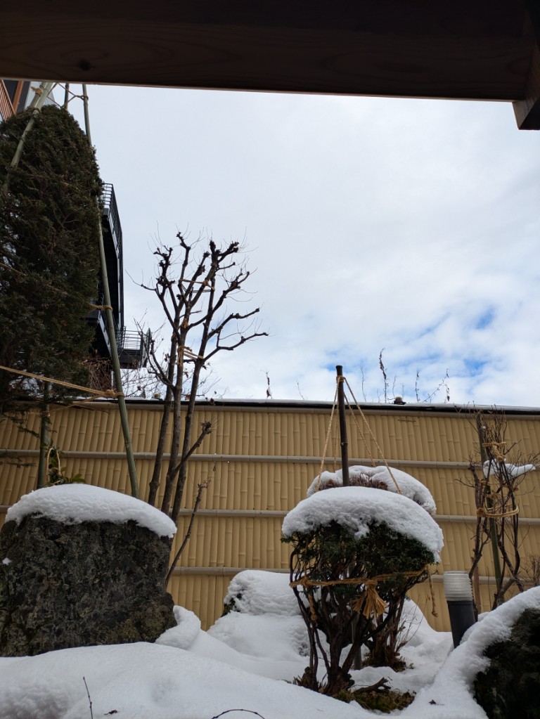 曇り空ですが気温は当館玄関先の気温計で9℃まで上がっています。