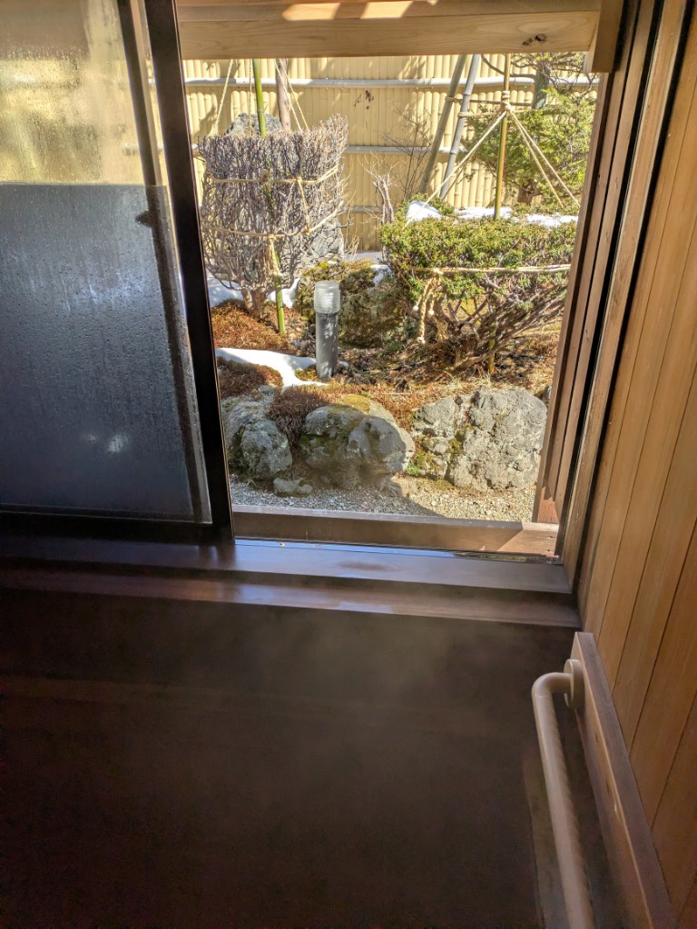 気温は当館玄関先の気温計で6℃まで上がってきました。
