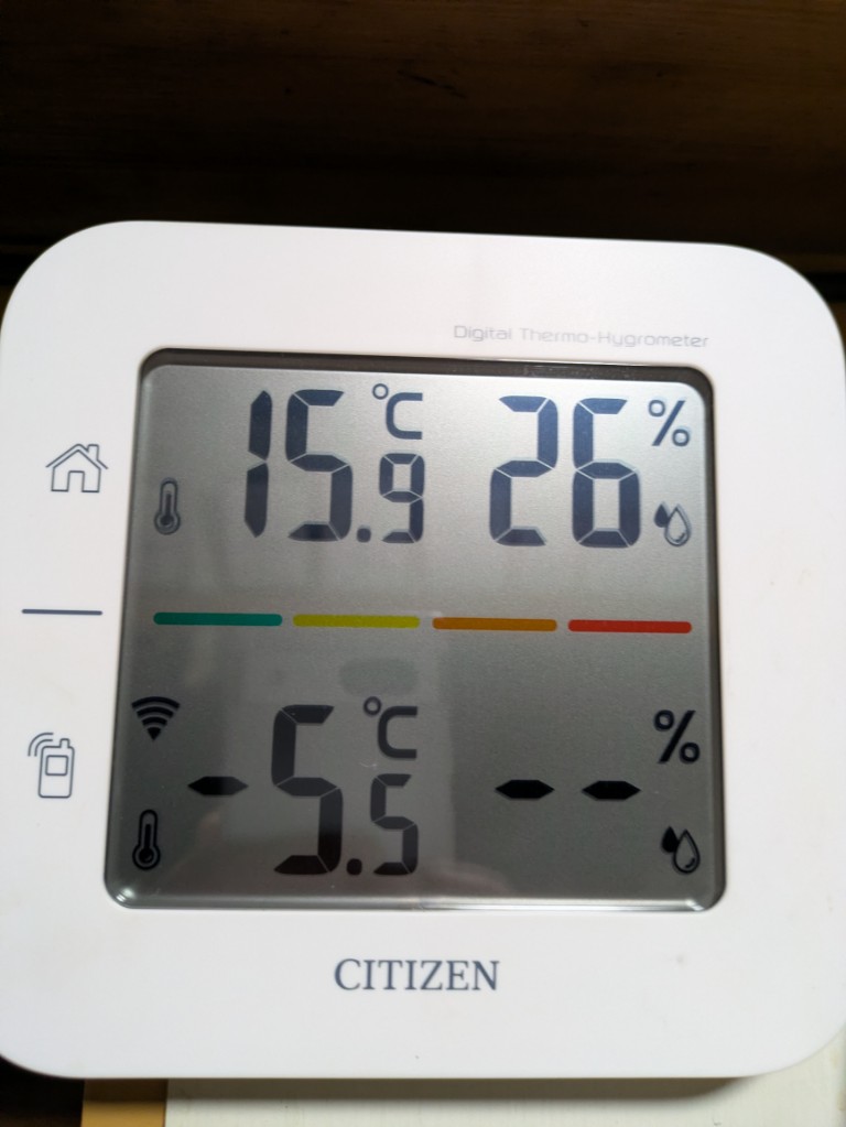 気温は当館玄関先の気温計で6℃と久しぶりに高くなっています。