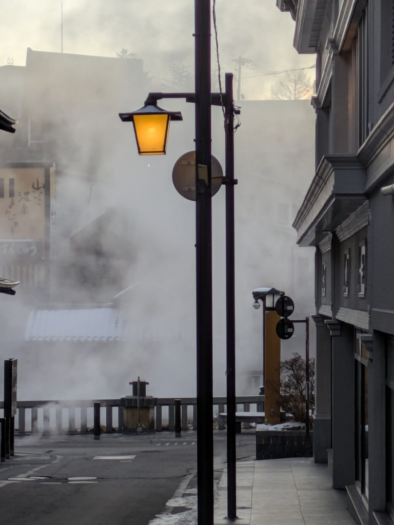 湯畑の湯けむりももくもくでした。