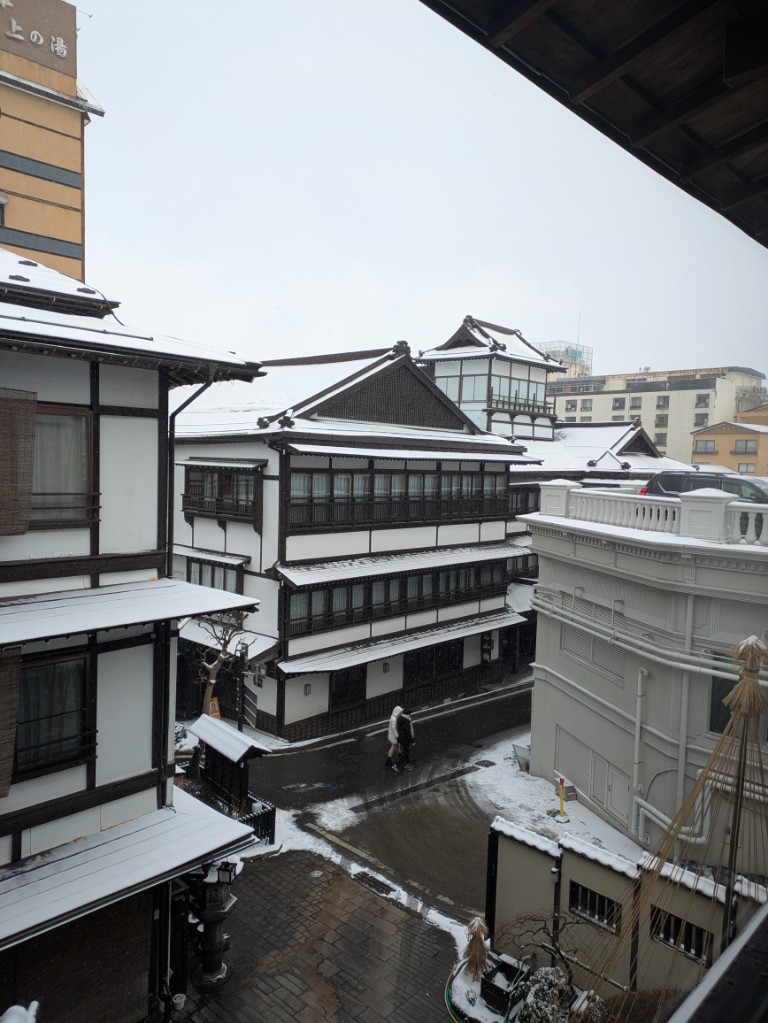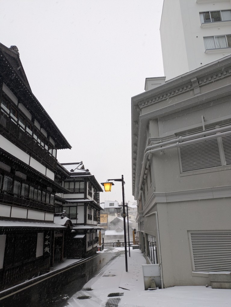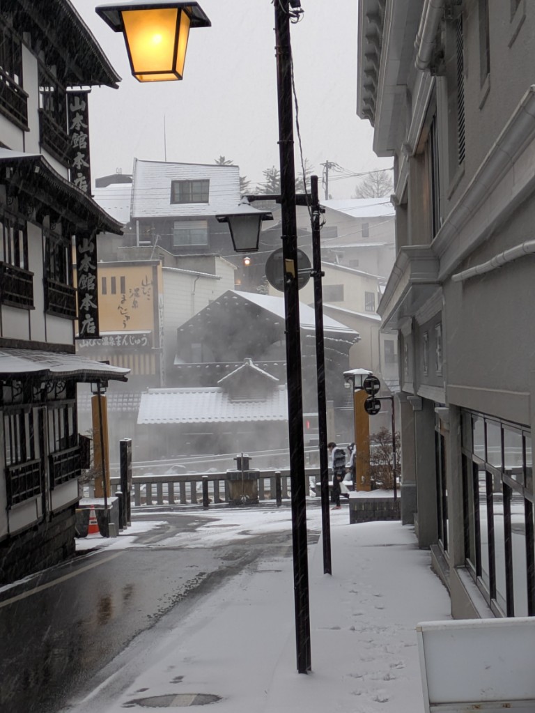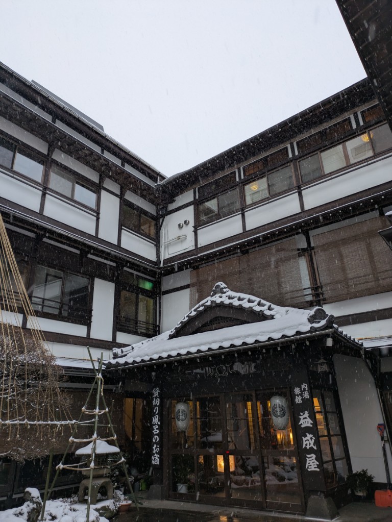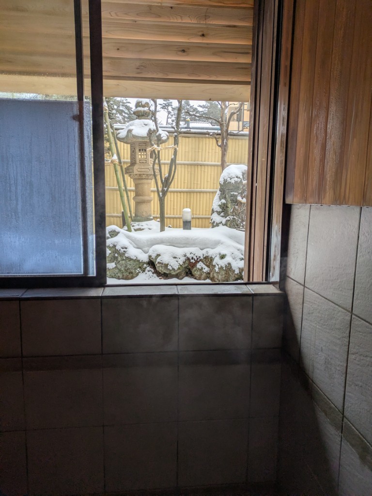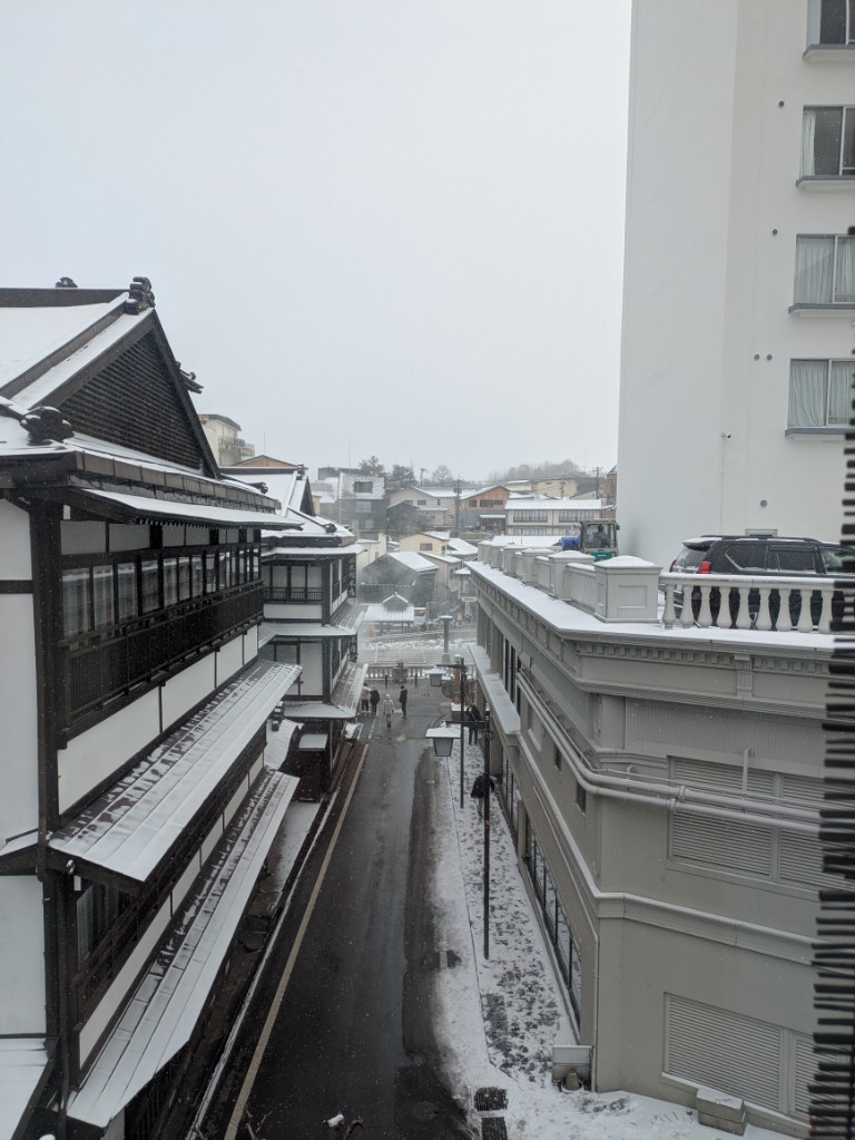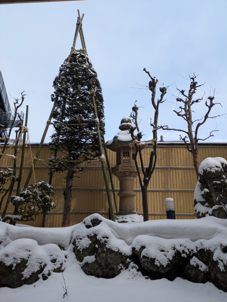気温は当館玄関先の気温計で−6.5℃と厳しい冷え込みが続いています。