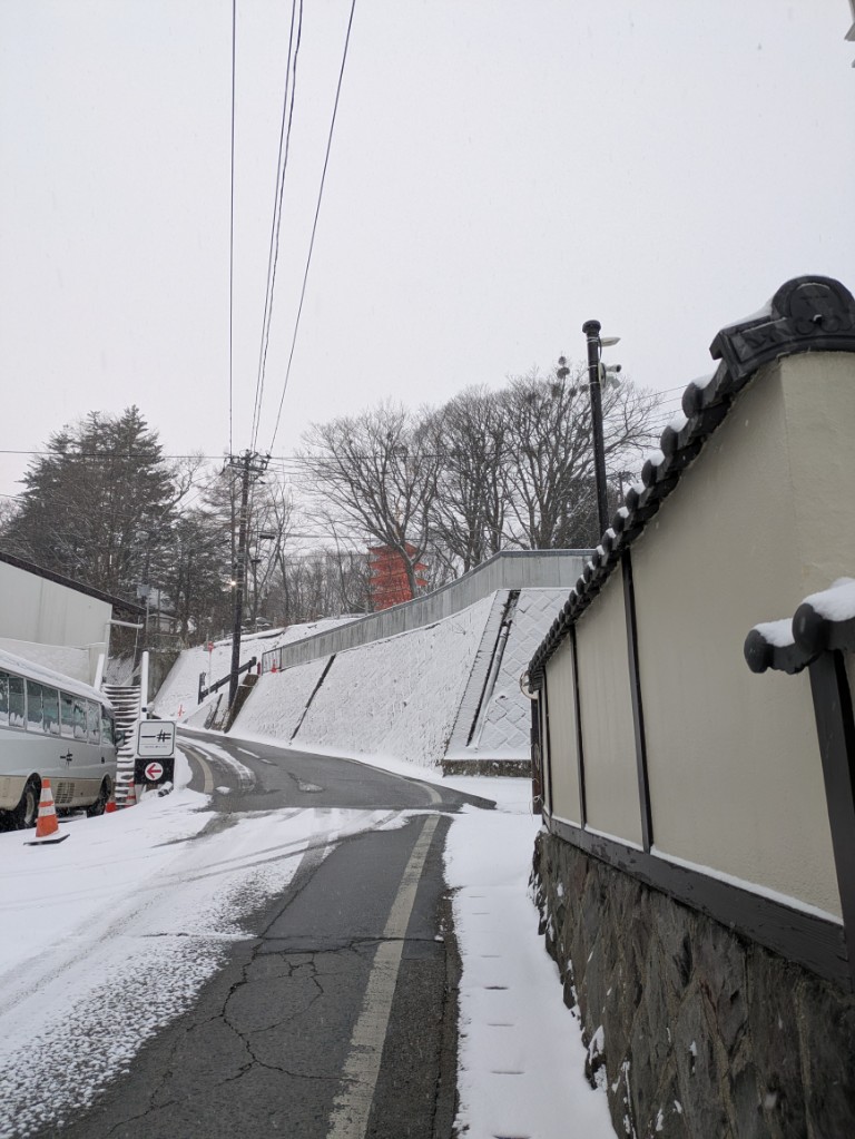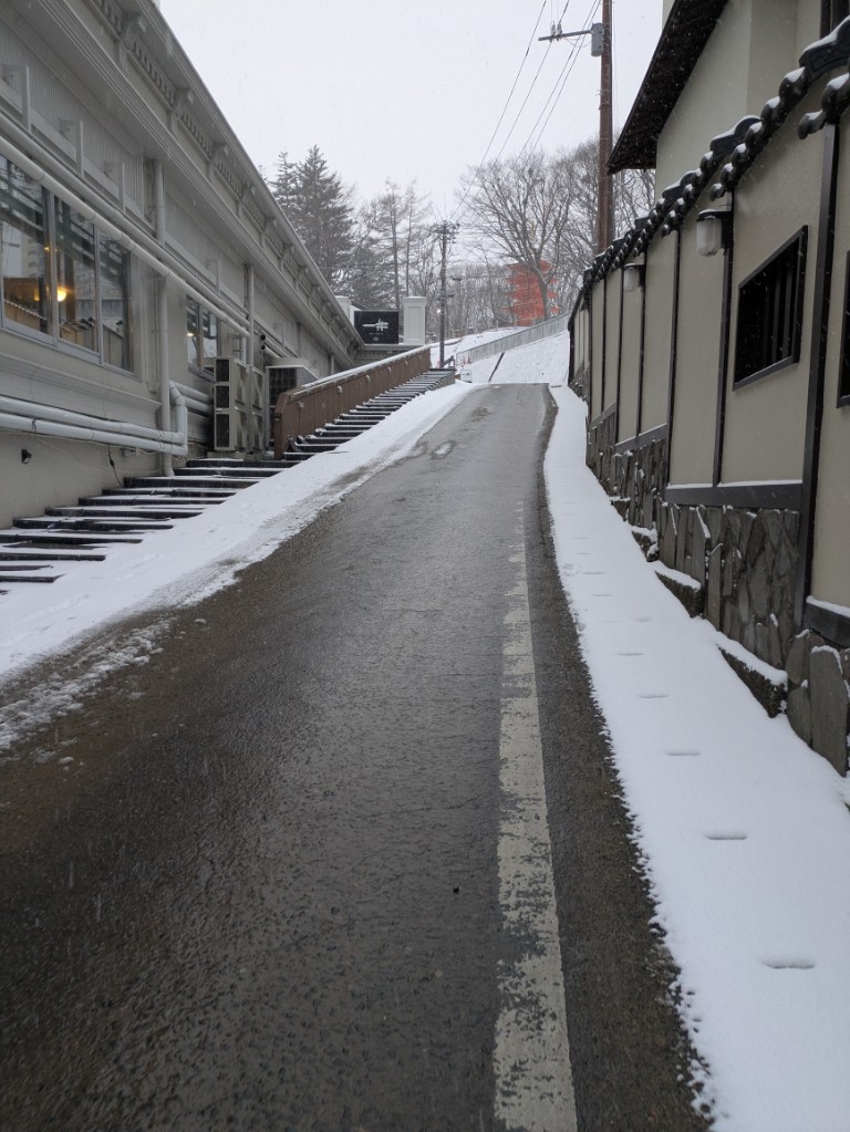 道路の融雪ではない所は雪が積もっていました。