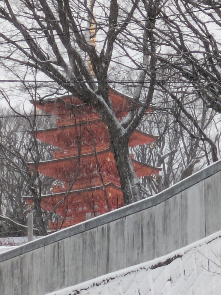 雪景色の光泉寺五重の塔です。