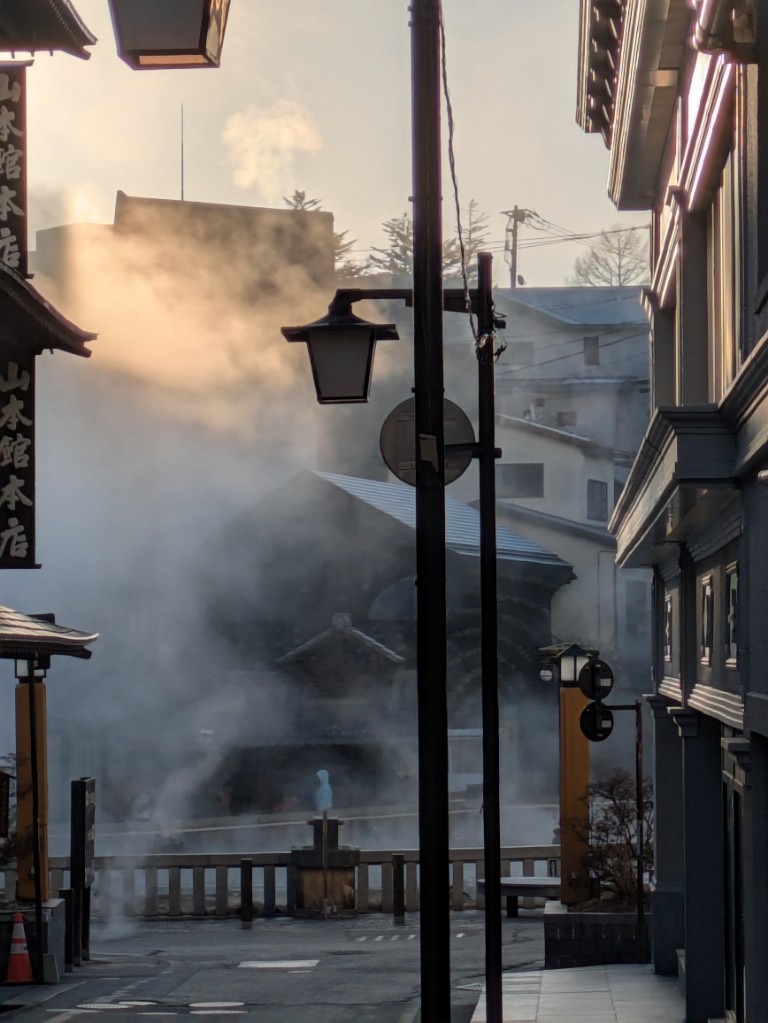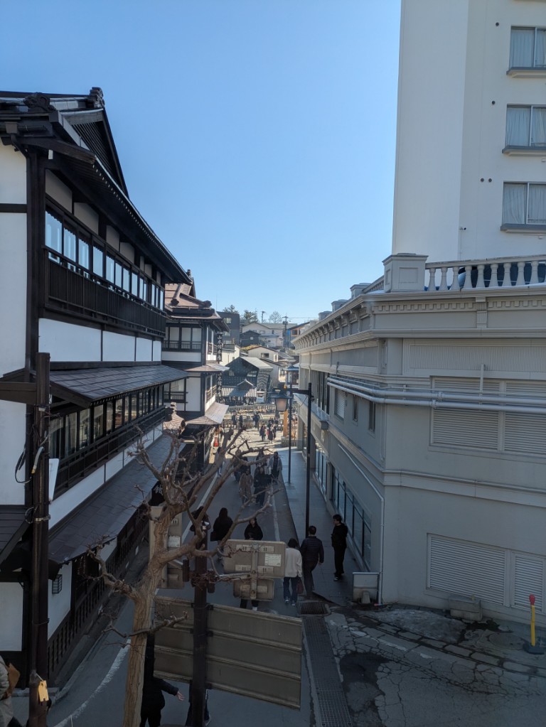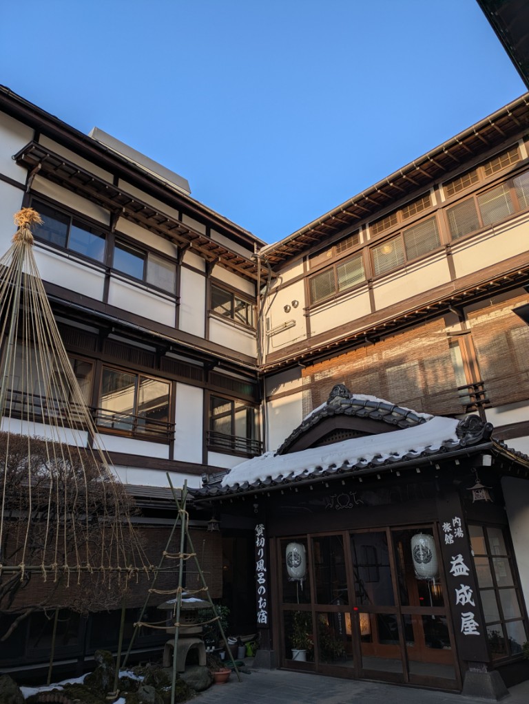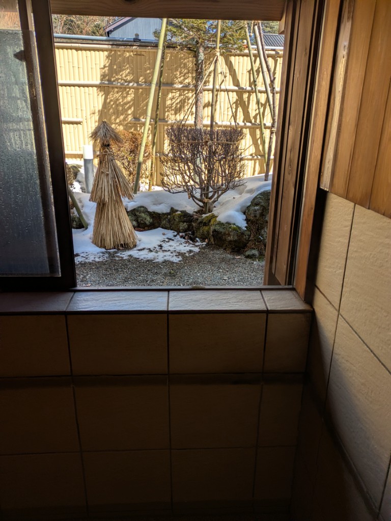 気温は当館玄関先の気温計で9℃まで上がっています。