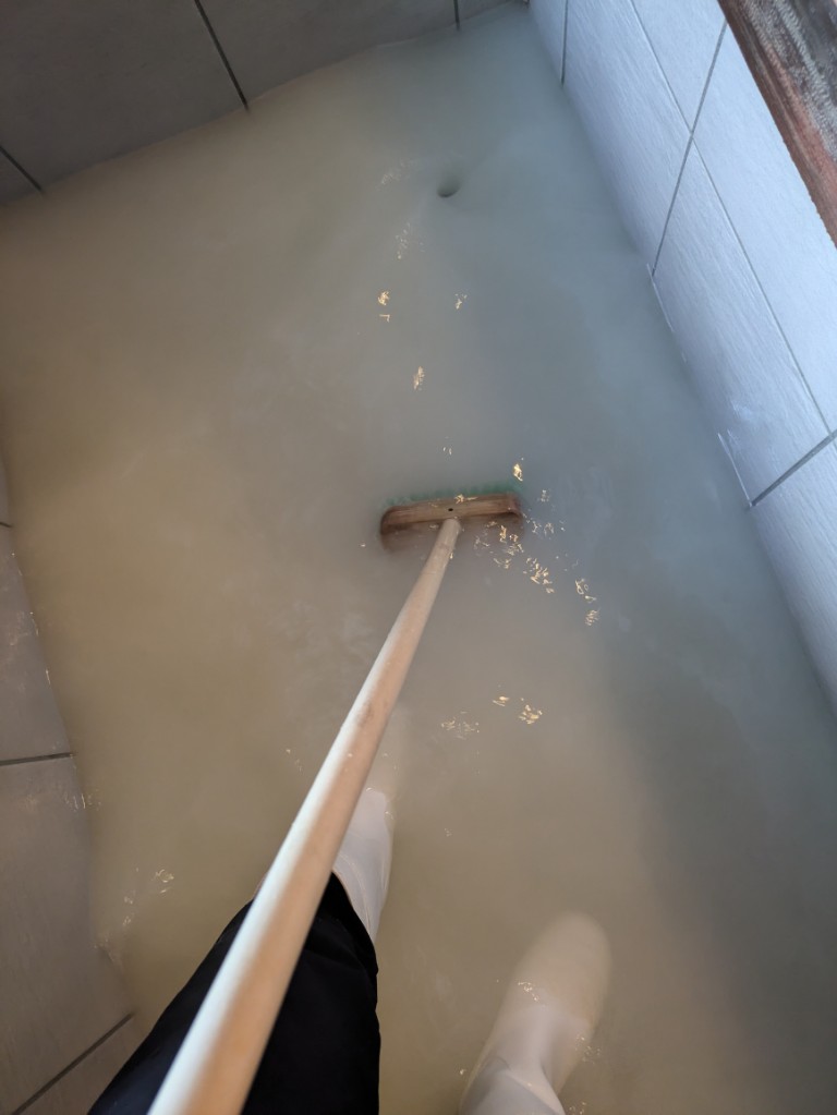 昨日は湯畑で湯の花採取をしていましたので湯花が沈殿していました。