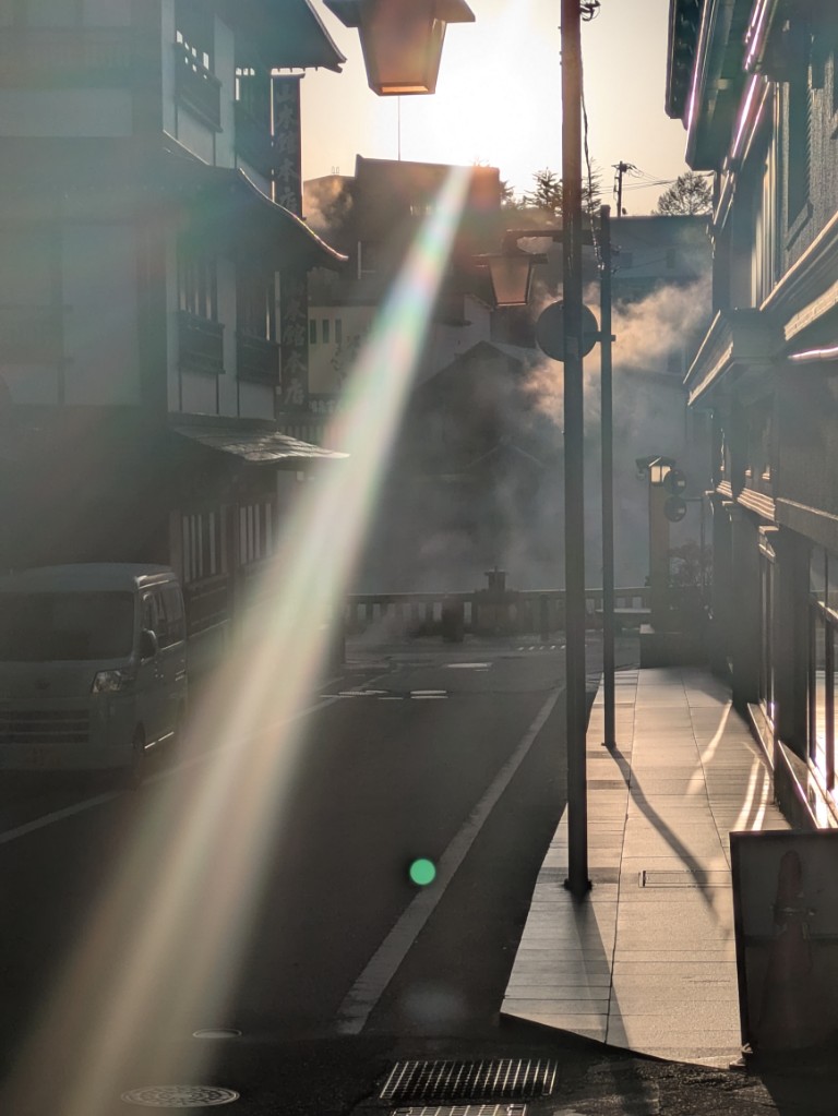 気温は当館玄関先の気温計で13℃まで上がってきました。
