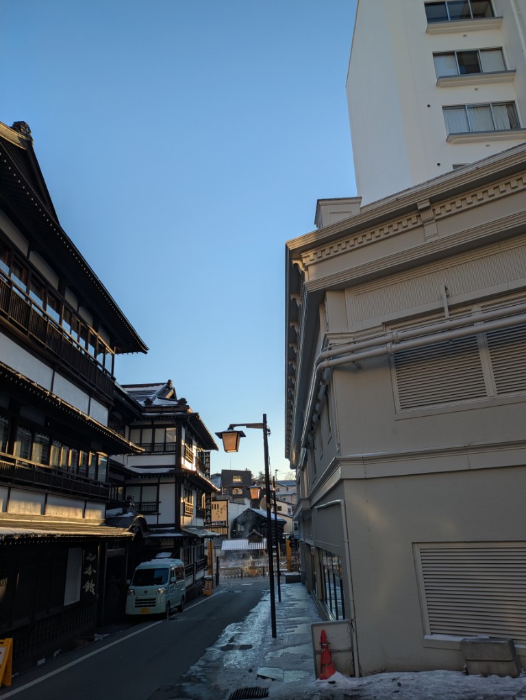 気温は当館玄関先の気温計で2℃と相変わらず冷え込んでいます。