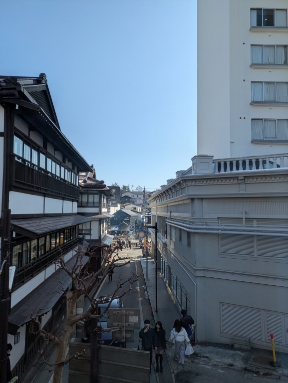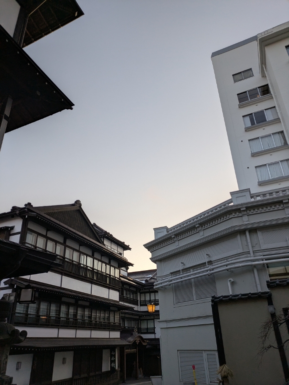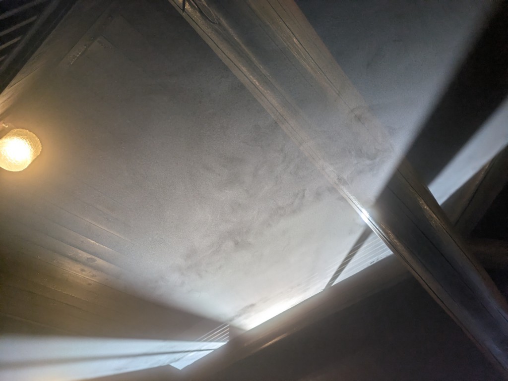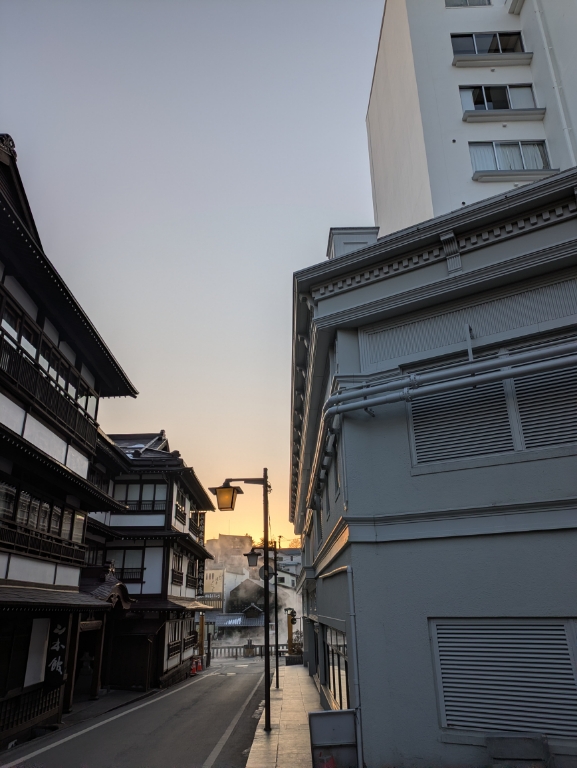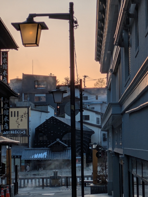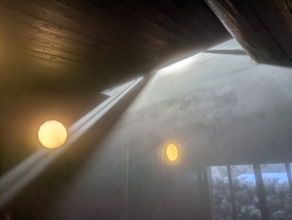 本日も男性用浴場の湯気が日差しに照らされていました。