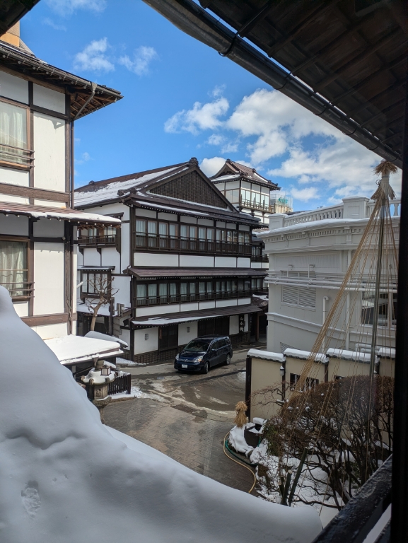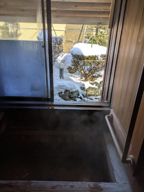 気温は当館玄関先の気温計で4℃近くまで上がって久しぶりに暖かい感じがします。