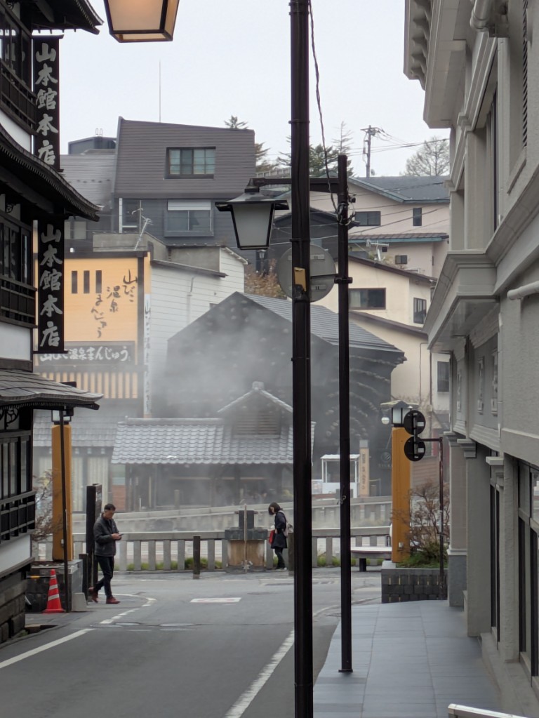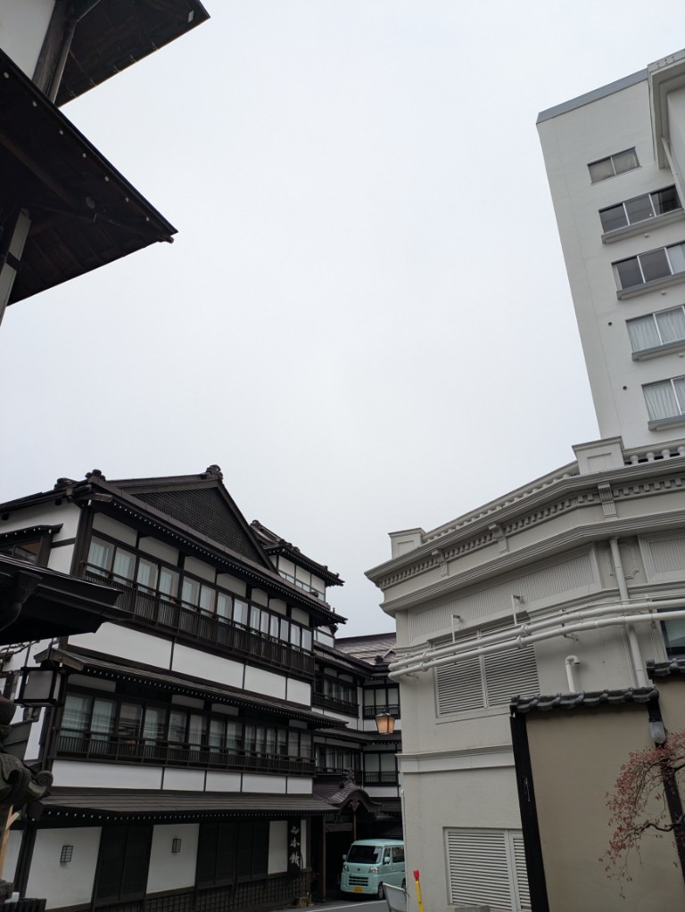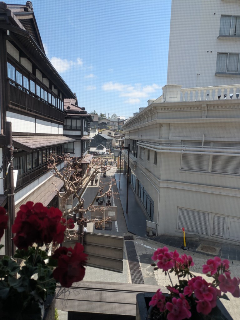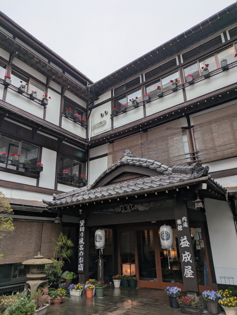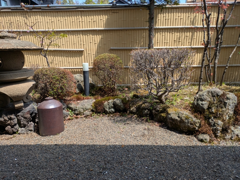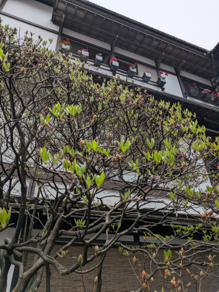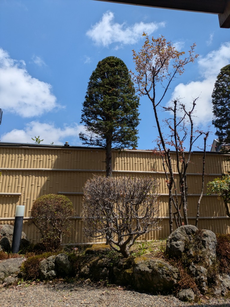 気温は当館玄関先の気温計で15℃を少し超えています。