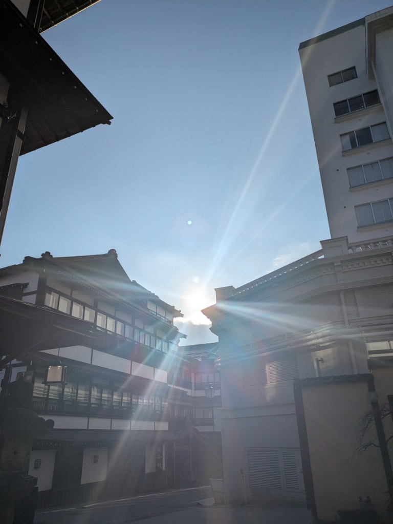 気温は当館玄関先の気温計で14℃まで上がっています。