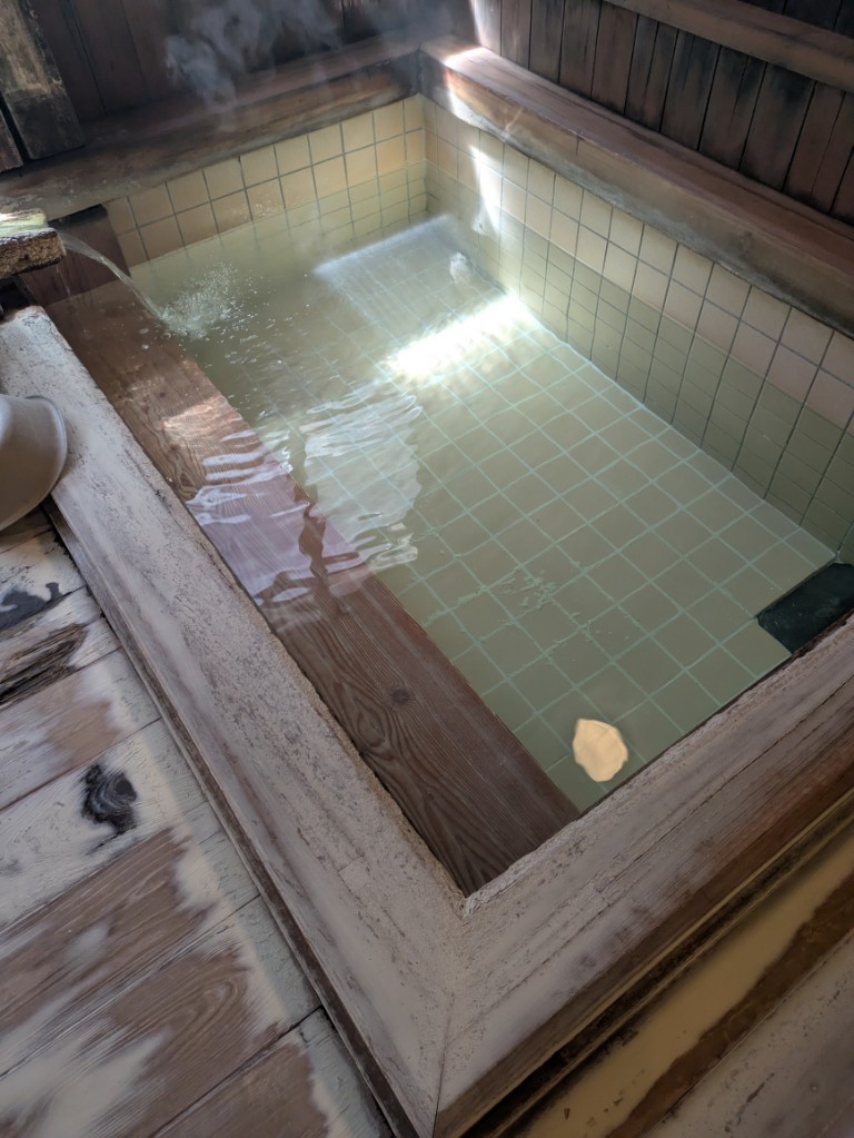 昨夜は気温が下がっていましたのでお湯がぬるくなってしまったので男湯・女湯ともにお湯をはらって入れ換えました。