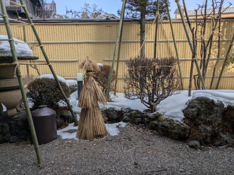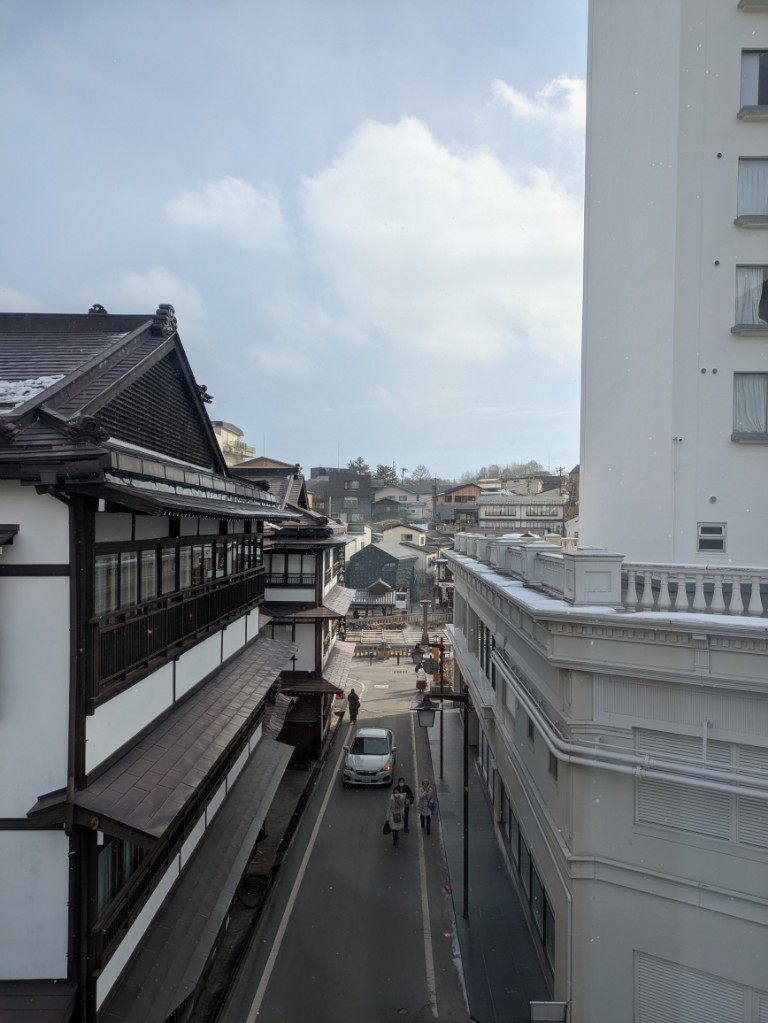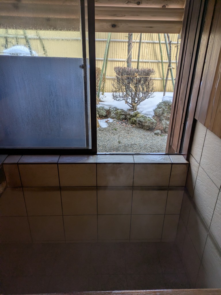 気温は当館玄関先の気温計で−3℃を下回って北風が吹くととても寒く感じます。