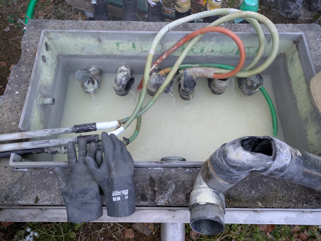 最後に駐車場の融雪パイプと貯湯槽の手入れをしました。