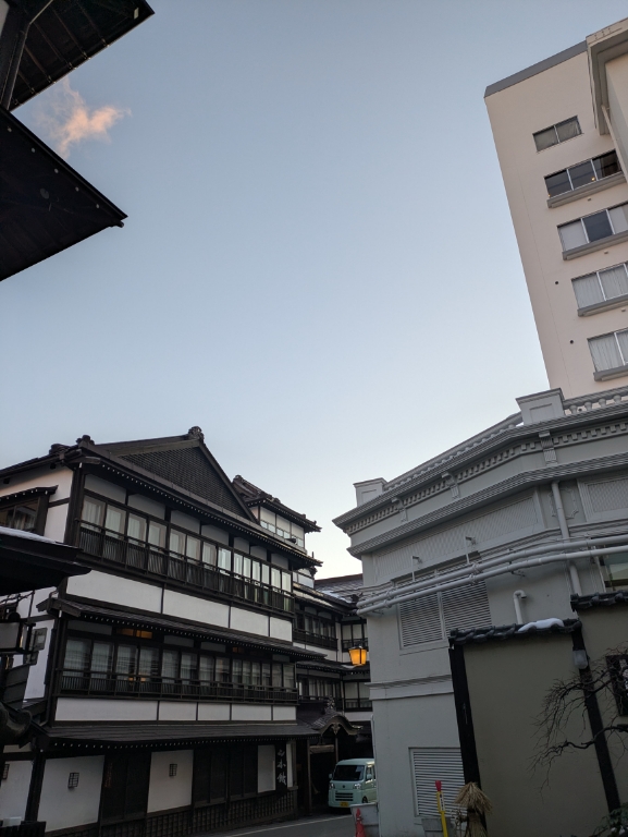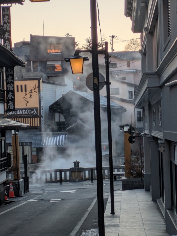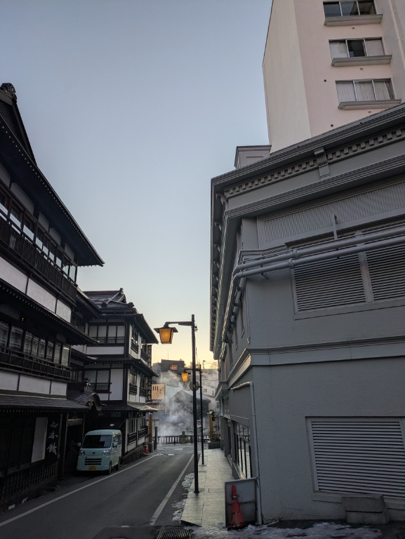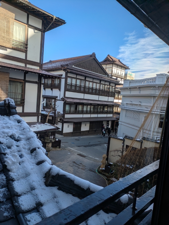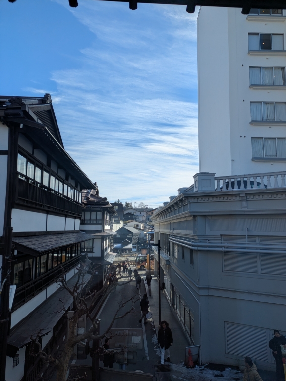 気温は当館玄関先の気温計で2℃と低めですが日差しがありほっとします。