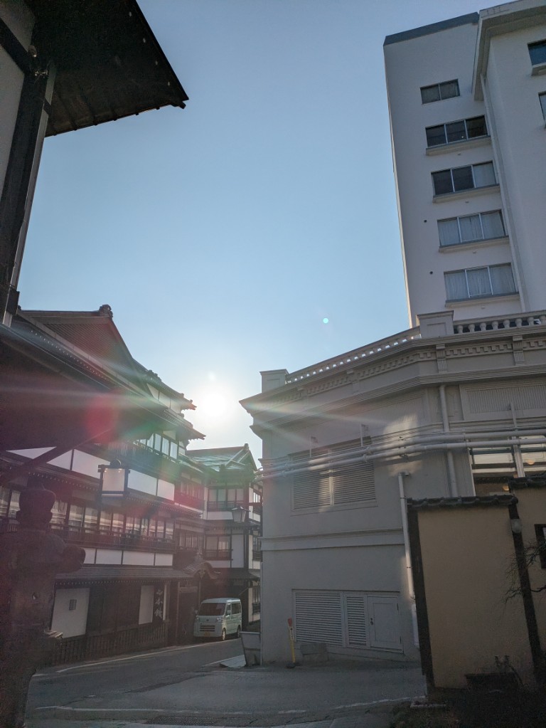 気温は当館玄関先の気温計で15℃まで上がっています。