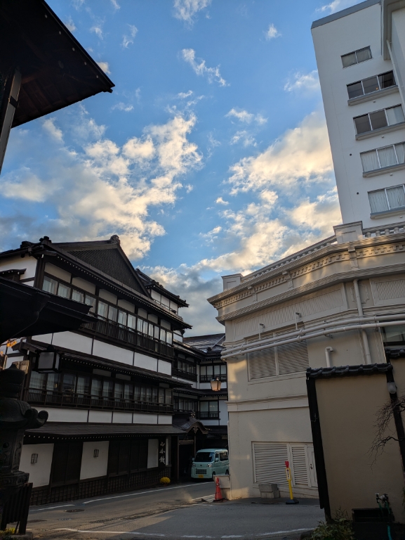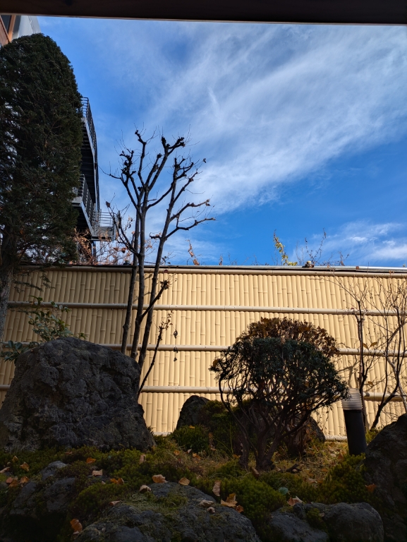 気温は当館玄関先の気温計で12℃と二桁まで上がっています。