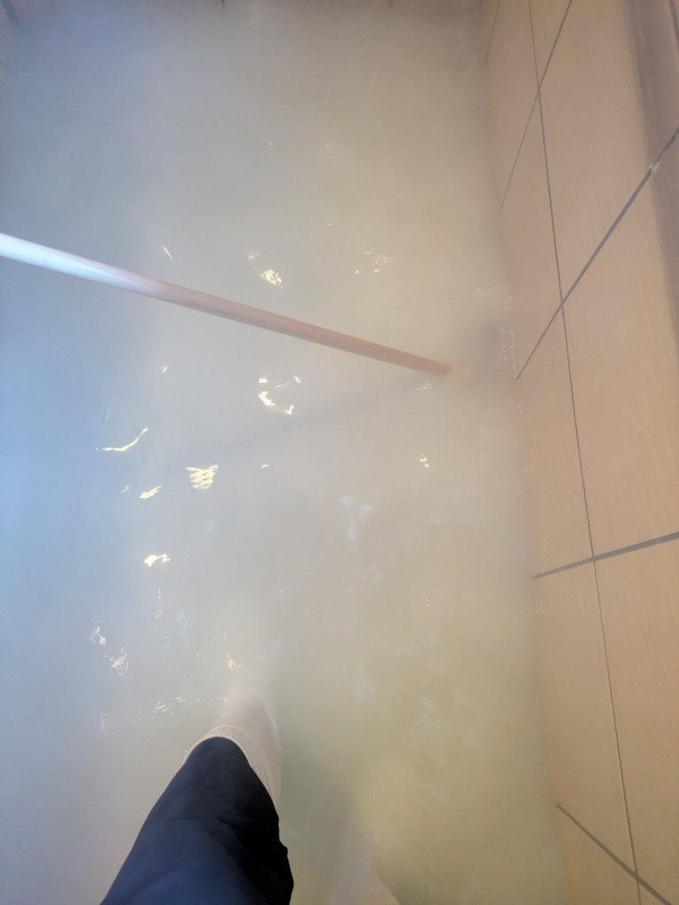 もったいないですが順番にお掃除をしてお湯を入れ換えますので栓を抜いてはらいました。