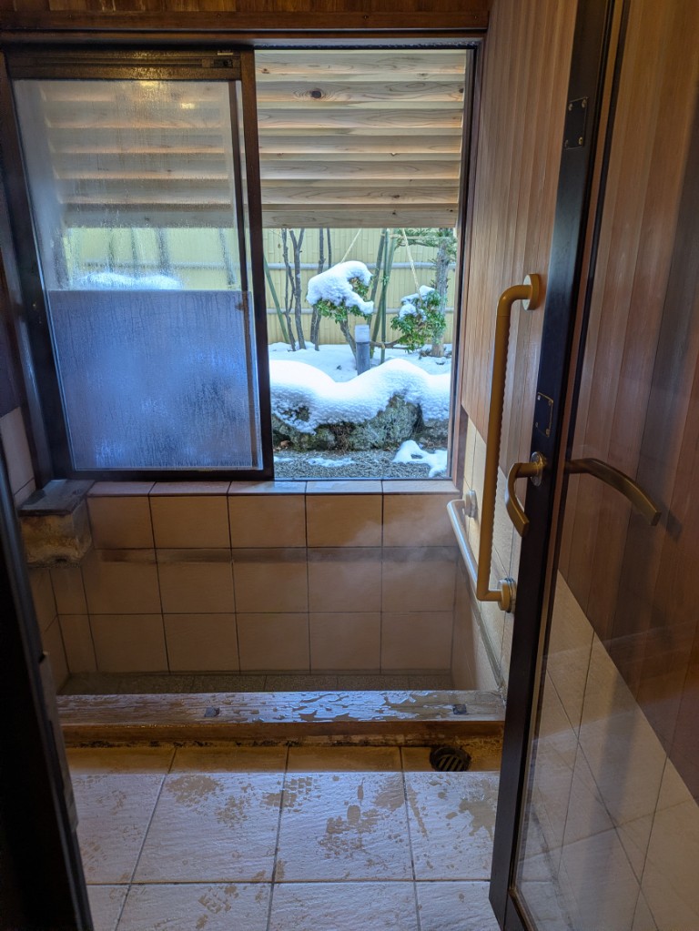 昨日は湯畑で湯の花採取をしていましたので浴槽に湯花がたくさん沈殿していました。
